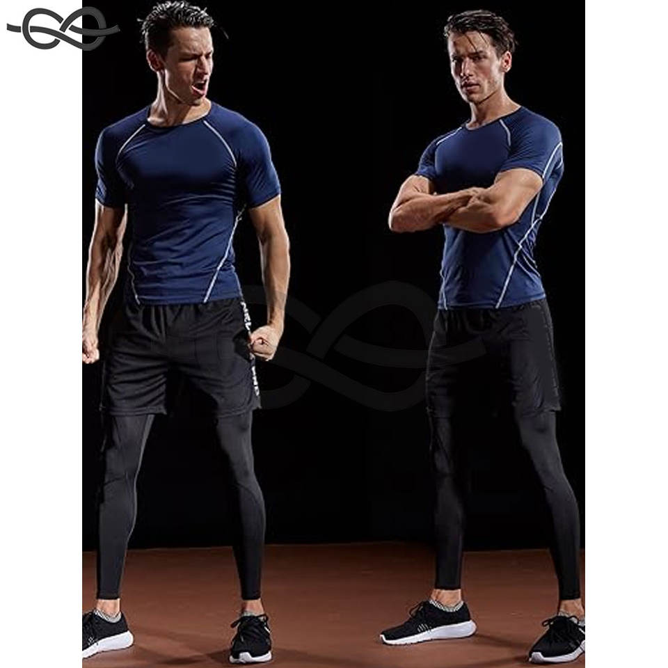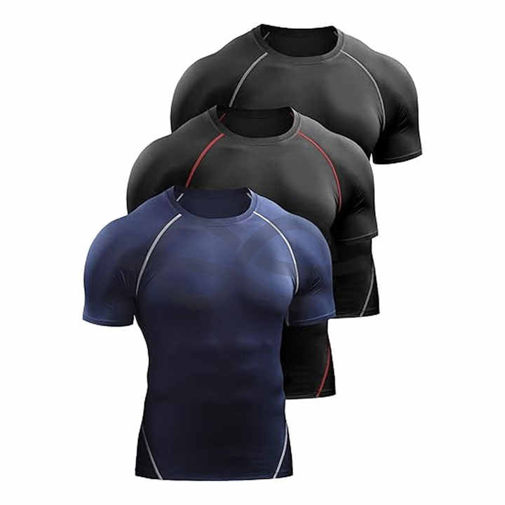 เสื้อยืดออกกำลังกายแบบรัดกล้ามเนื้อสำหรับผู้ชายเสื้อออกกำลังกายแบบแห้งเร็วระบายอากาศได้สำหรับใส่ออกกำลังกายในยิมรองรับการทำงานและความชื้นใส่สบาย