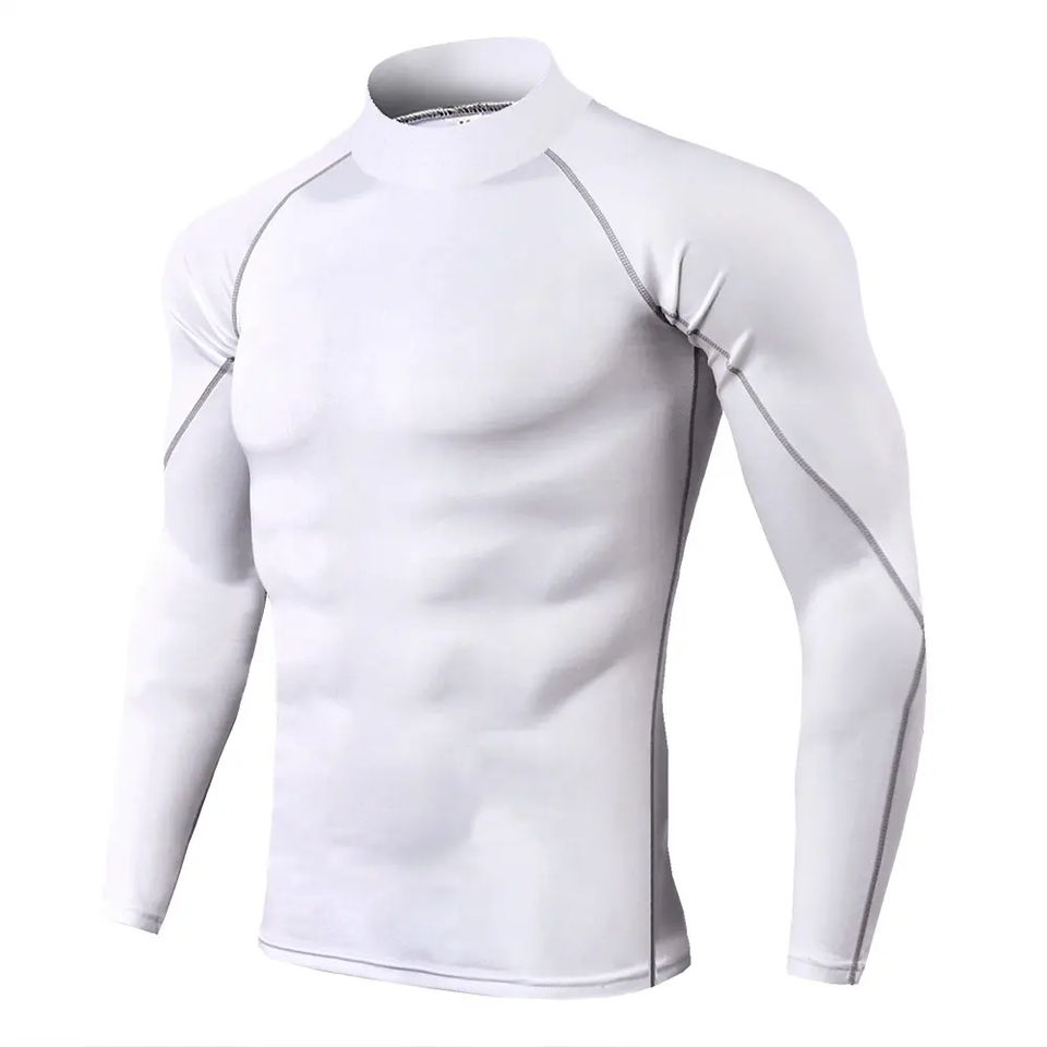 เสื้อคอมเพรสชั่นแขนยาวสำหรับผู้ชาย ผ้าสเตรช ระบายอากาศ แห้งเร็ว เหมาะสำหรับออกกำลังกาย ฟิตเนส รับสกรีนโลโก้ ผลิตตามแบบ OEM ป้องกันแสงแดด UPF50