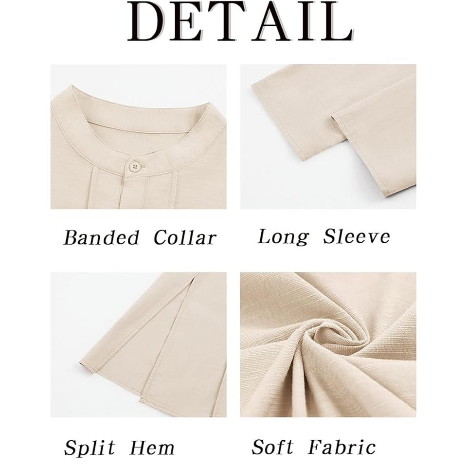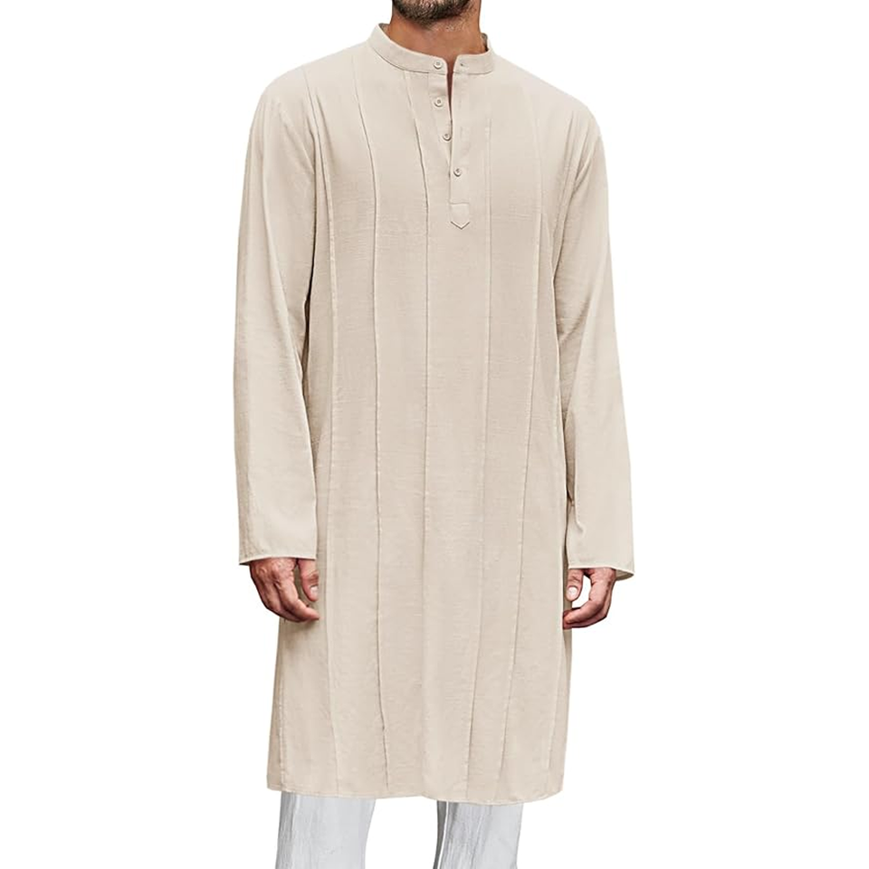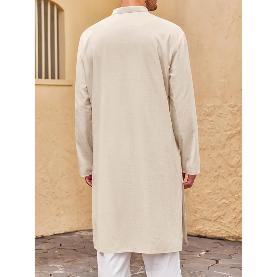 ชุดนอนผ้าคอตตอนสำหรับผู้ชาย, ชุดนอนสไตล์อินเดียแบบมุสลิมใส่สบายชุดกางเกงโยคะแขนยาวผ่าข้าง