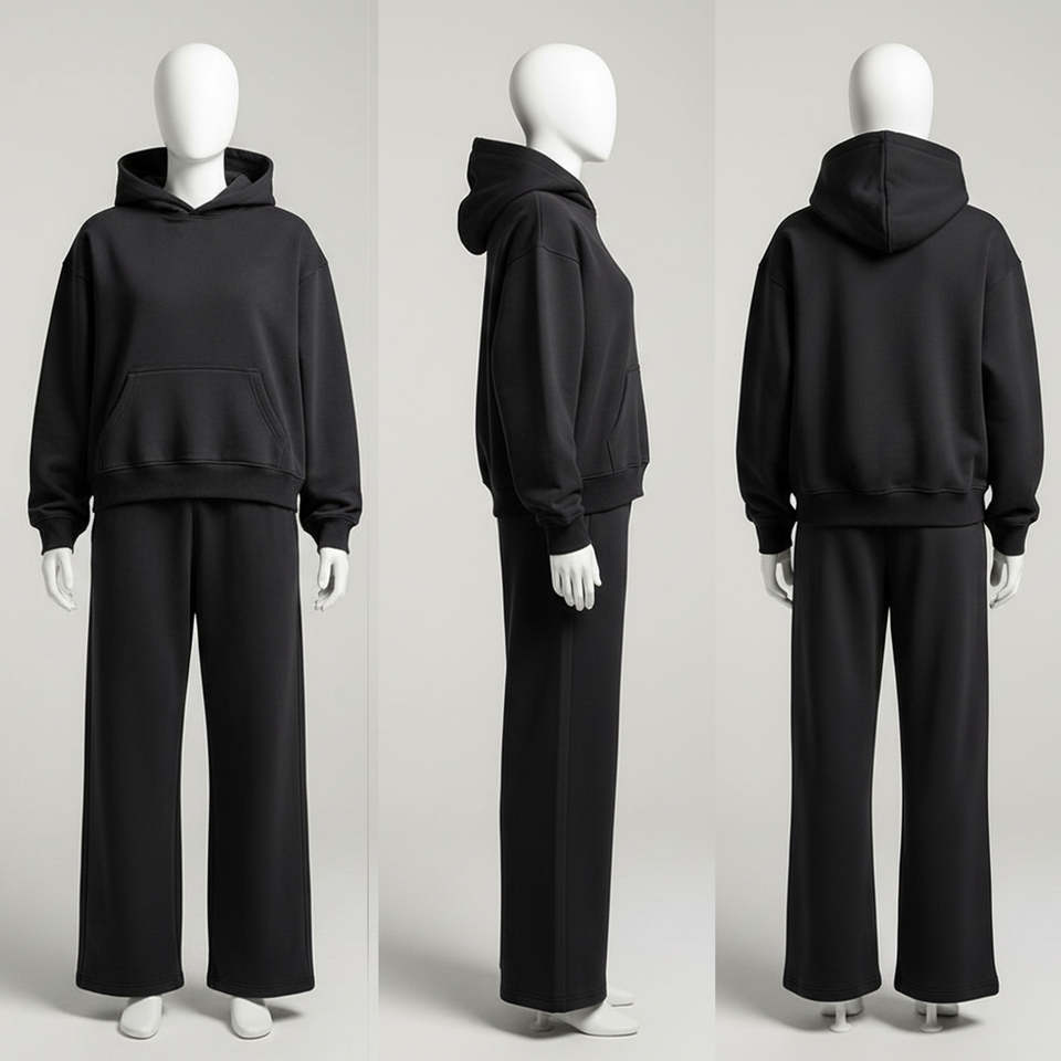 ชุดเซ็ตแทรคสูท 2-in-1 เสื้อฮู้ดดี้โอเวอร์ไซส์ผ้าฝ้าย 100% สำหรับฤดูหนาว สไตล์ลำลอง สีพื้น หนานุ่ม พร้อมกางเกงวอร์มทรงหลวม แบบยูนิเซ็กซ์