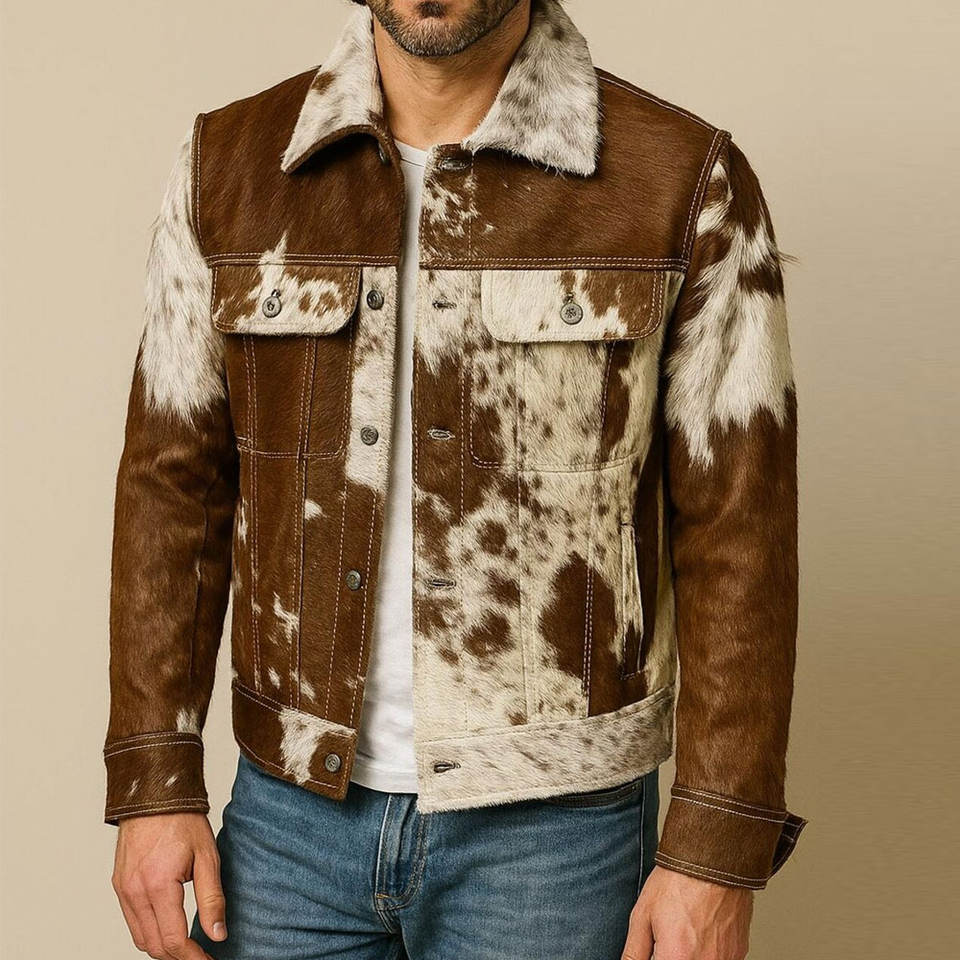 เสื้อแจ็คเก็ตหนังวัวแท้คุณภาพพรีเมียมสำหรับผู้ชาย