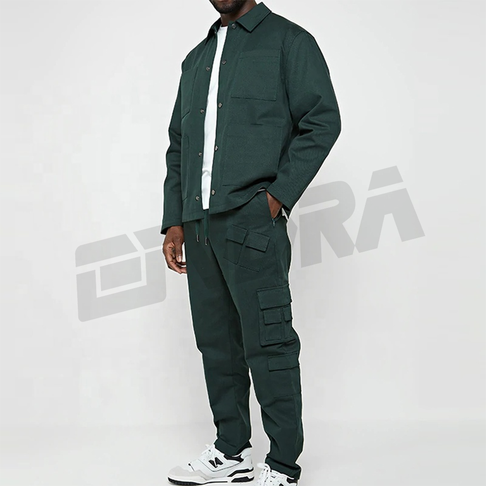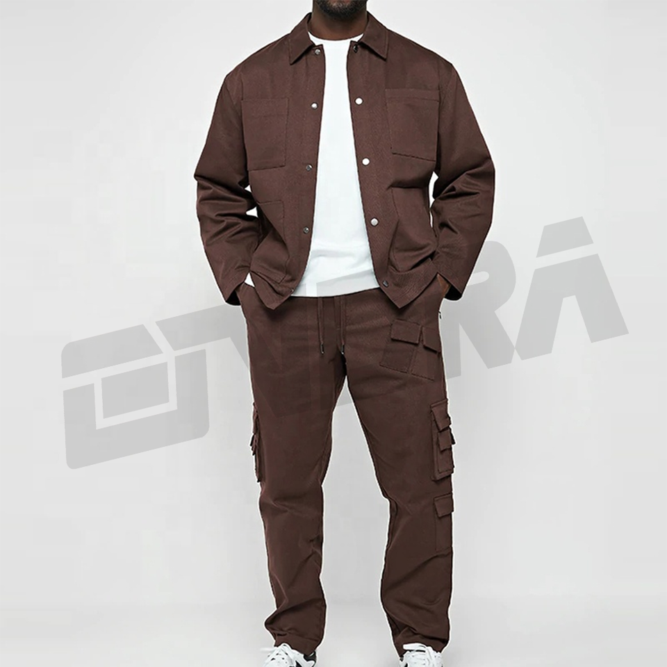 ชุดวอร์มคาร์โก้สำหรับบุรุษเสื้อแจ็กเก็ตปักลายและกางเกงวิ่งยูทิลิตี้สำหรับสตรีทแวร์และไลฟ์สไตล์ที่แอคทีฟ