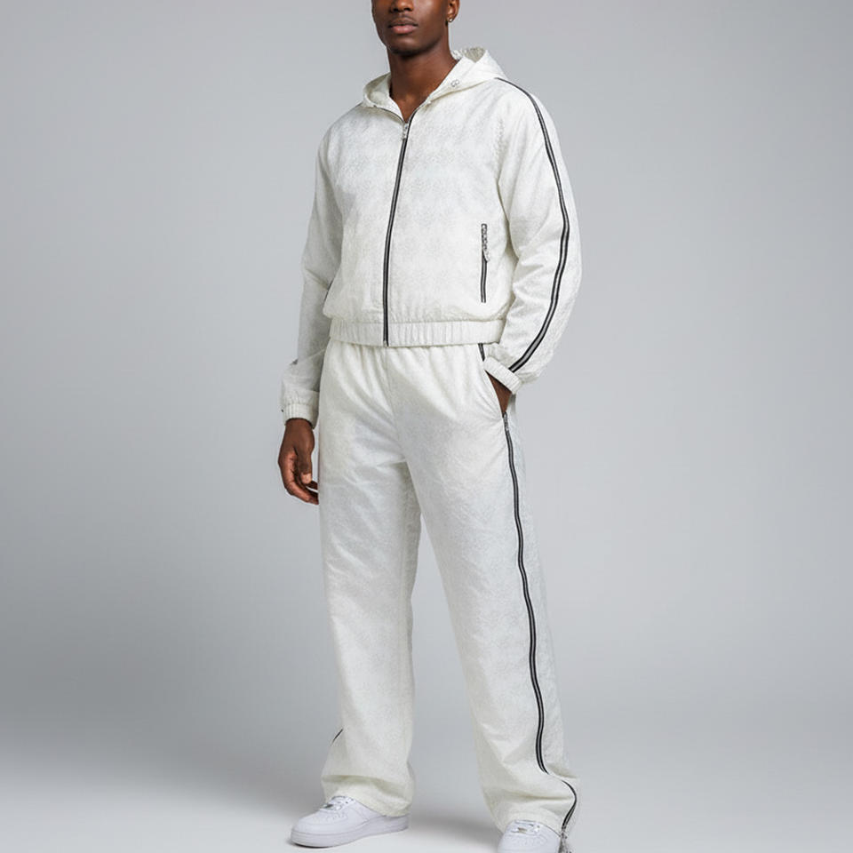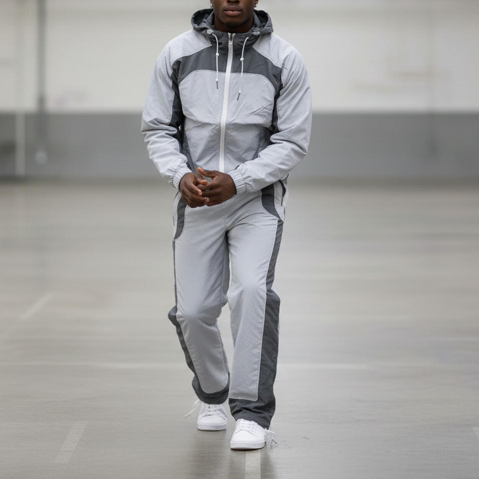 ชุดเซ็ตแทรคสูทมีฮู้ดพิมพ์ลายสไตล์วินเทจสำหรับผู้ชาย น้ำหนักเบา เหมาะสำหรับใส่เล่นกีฬา ผลิตจำนวนมาก