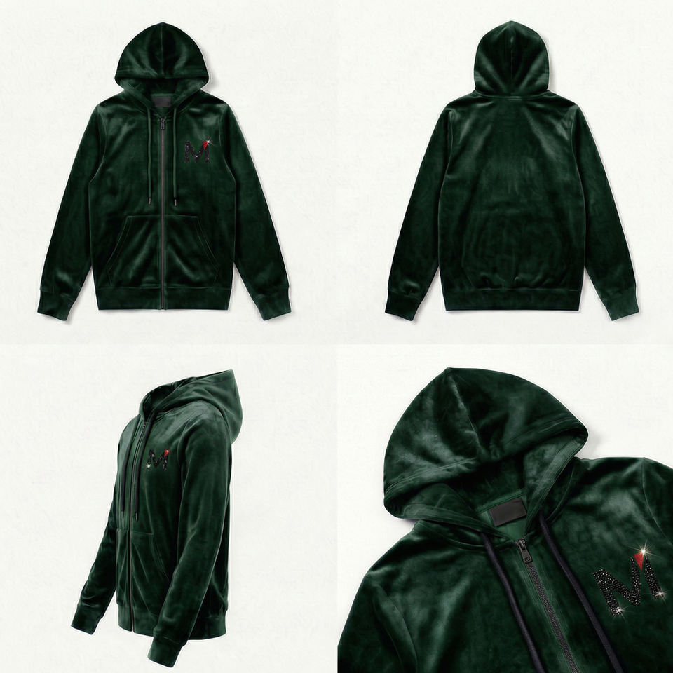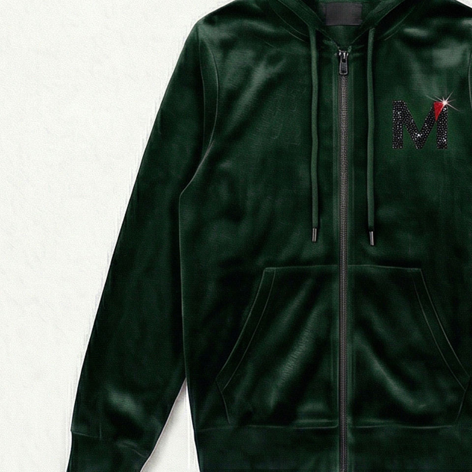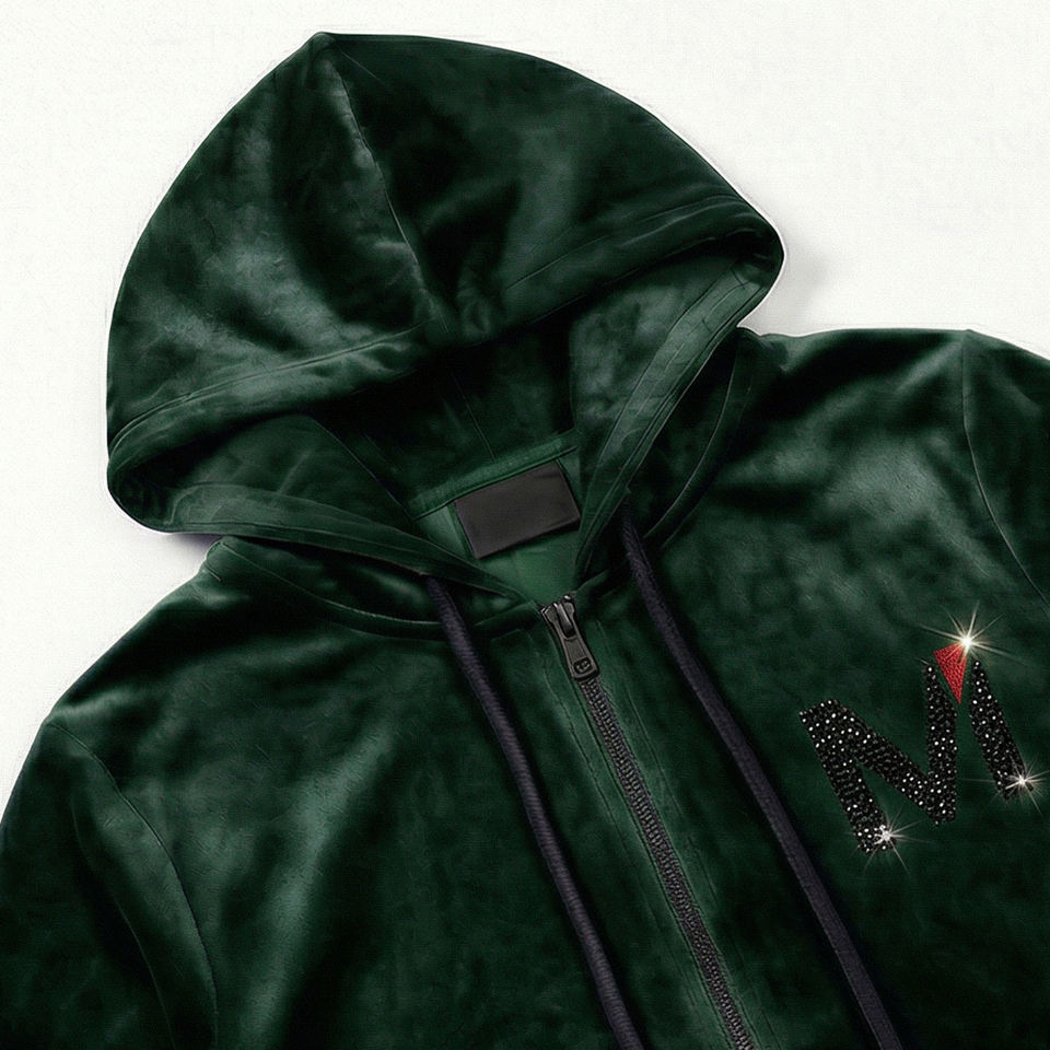 ชุดวอร์มกำมะหยี่พิมพ์ลายหรูหราแบบยูนิเซ็กซ์ สไตล์ลำลอง พร้อมซิปฮู้ดดี้และกางเกงจ็อกเกอร์ ไซส์พลัส ส่งเร็ว ระบายอากาศได้ดี