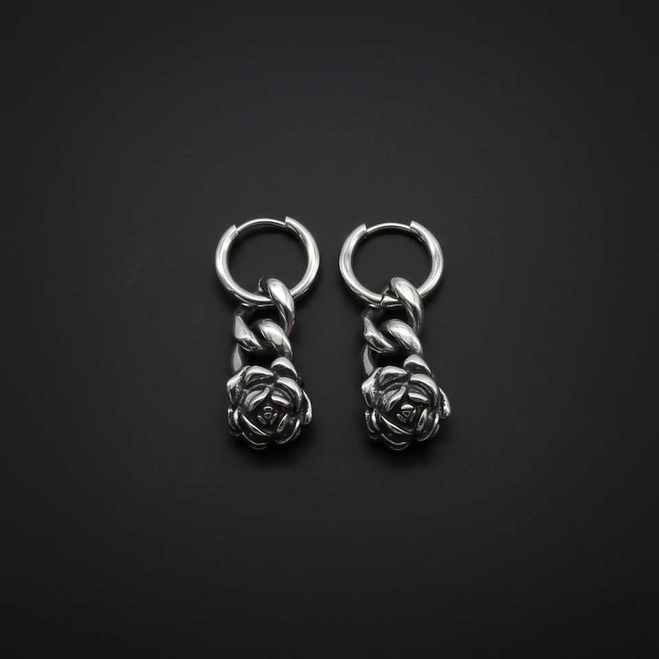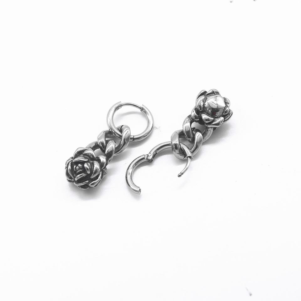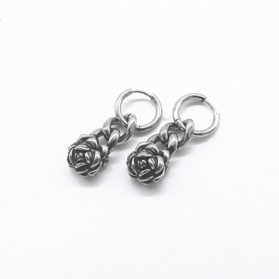 ต่างหูแบบสตั๊ดสั่งทำสำหรับผู้ชาย ทำจากสแตนเลสสตีล 316L ชุบทอง ป้องกันการแพ้ ประดับด้วยจี้รูปดอกกุหลาบ พร้อมสายคิวบัน สไตล์วินเทจ พังก์ กอธิค