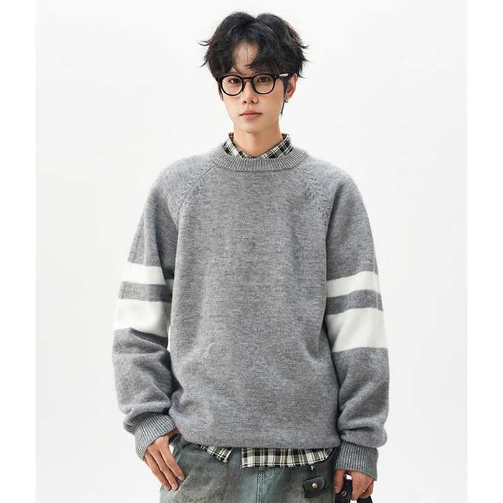 เสื้อสเวตเตอร์ลายทางแบบมีเท็กซ์เจอร์สำหรับผู้ชาย สไตล์วินเทจทรงหลวม ใส่สบาย ระบายอากาศได้ดี เหมาะสำหรับฤดูหนาว ผ้าถักหนา ลายสั่งทำได้