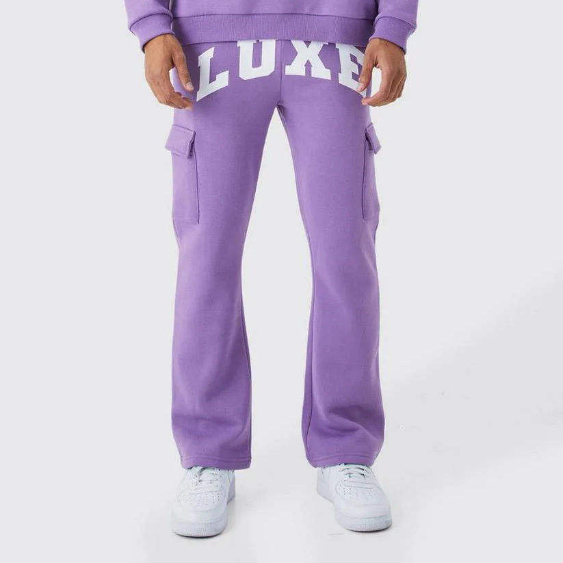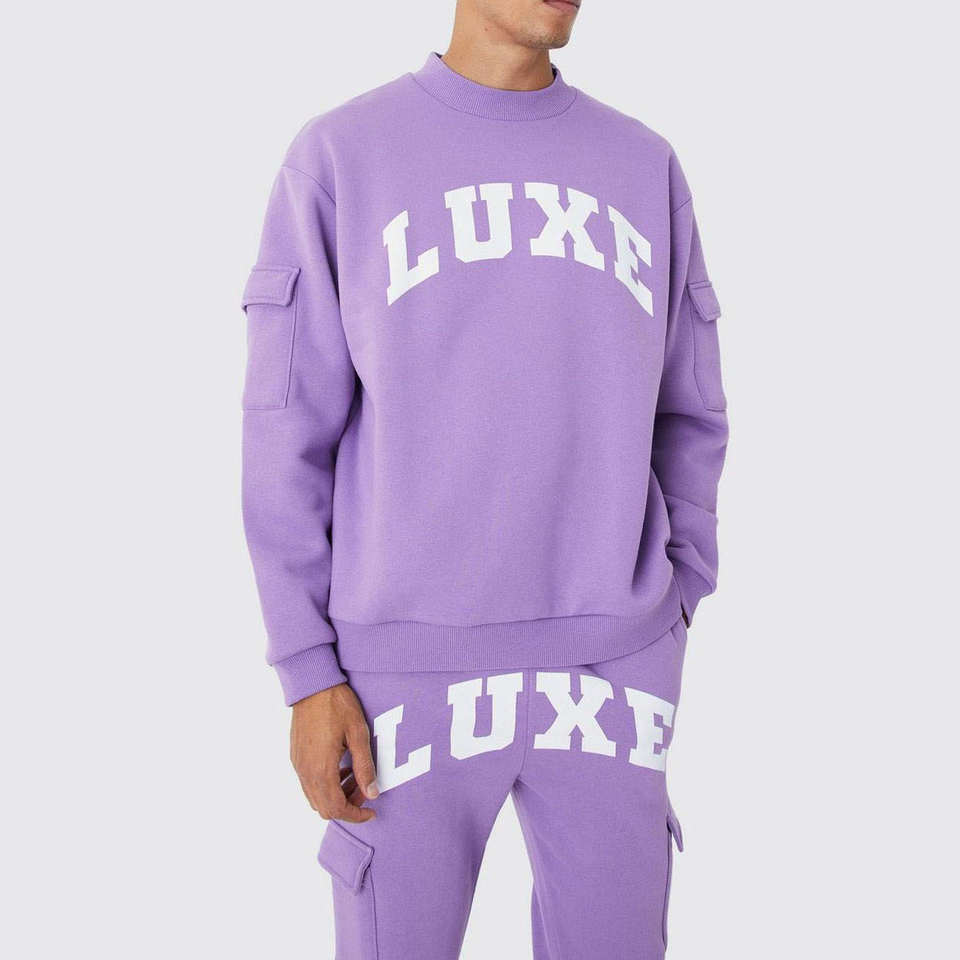 เสื้อสเวตเชิ้ตคอกลมทรงสลิมฟิตระบายอากาศได้ดีเป็นมิตรกับสิ่งแวดล้อมพร้อมโลโก้สั่งทำพิเศษสำหรับผู้ชาย และกางเกงคาร์โก้ขายาวแบบสองชิ้น