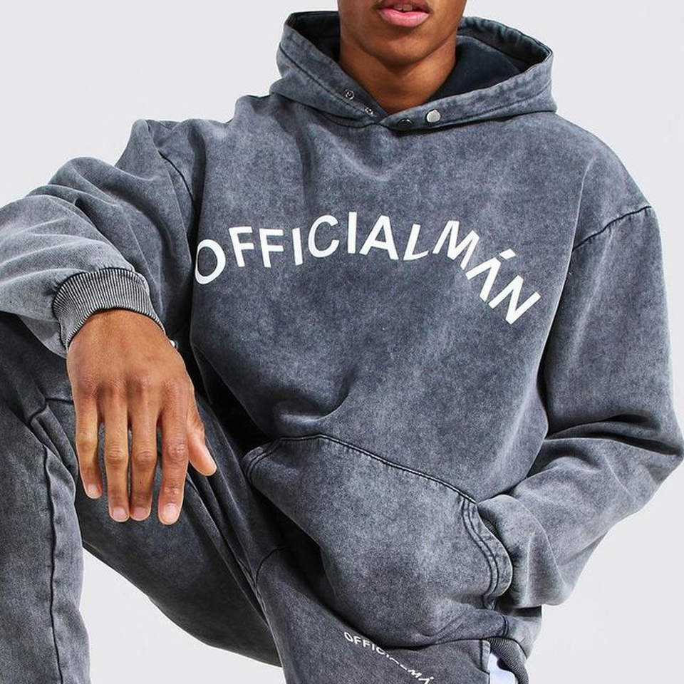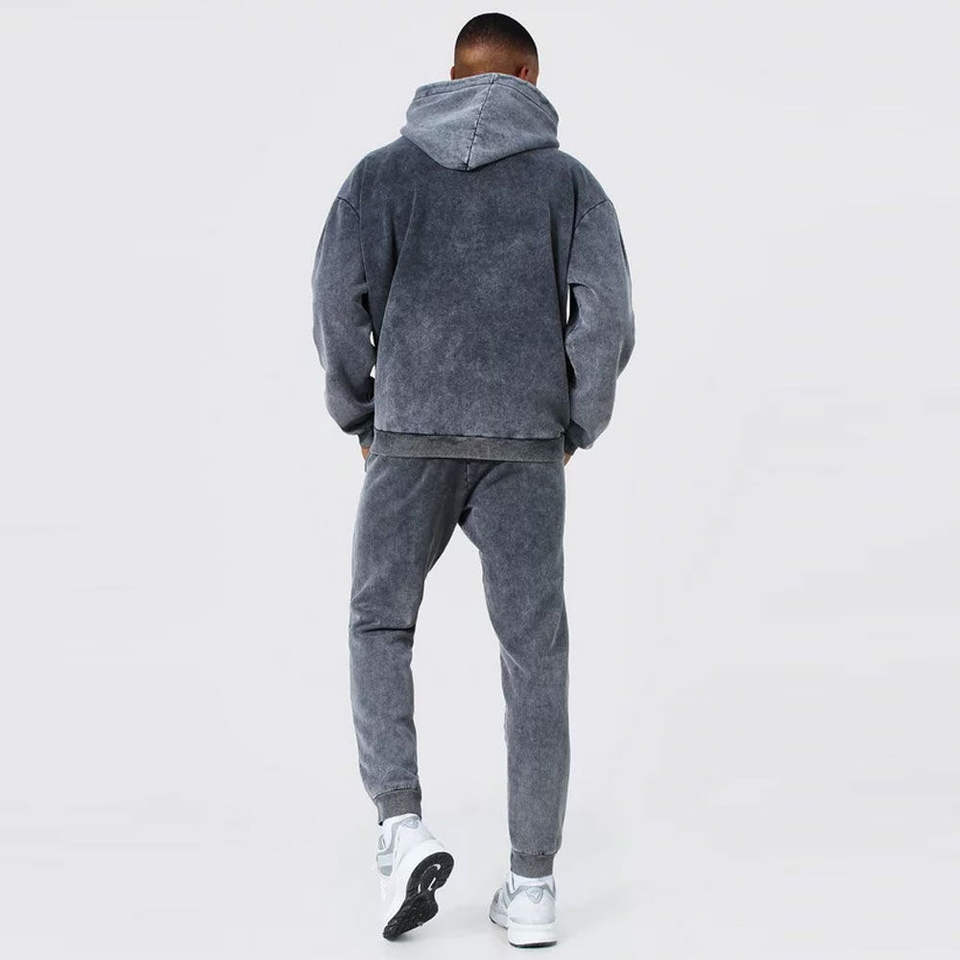 ชุดวอร์มฮู้ดดี้ผู้ชายแบบสั่งทำพิเศษ น้ำหนักเบา ระบายอากาศได้ดี เป็นมิตรกับสิ่งแวดล้อม สีเทาแบบวอช ชุดลำลอง เสื้อฮู้ดดี้ กางเกงจ็อกเกอร์ สองชิ้น