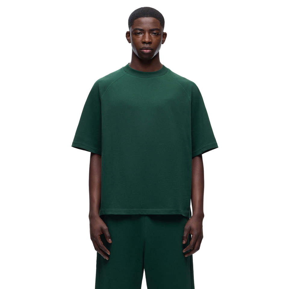 เสื้อยืดโอเวอร์ไซส์สีเขียวเข้มสำหรับผู้ชาย ผ้าฝ้าย 100% คอกลม สไตล์ลำลอง สตรีทแวร์ ทรงปกติ รับผลิตแบรนด์ส่วนตัว แห้งเร็ว คุณภาพสูง