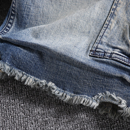 กางเกงยีนส์ขาสั้นเดนิมผู้ชาย สีน้ำเงินฟอก สไตล์ลำลอง มีกระเป๋าหลายช่อง ผ้าฝ้าย กางเกงขาสั้นฤดูร้อน รับทำโลโก้ สตรีทแวร์ OEM