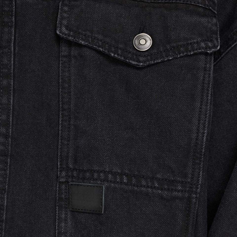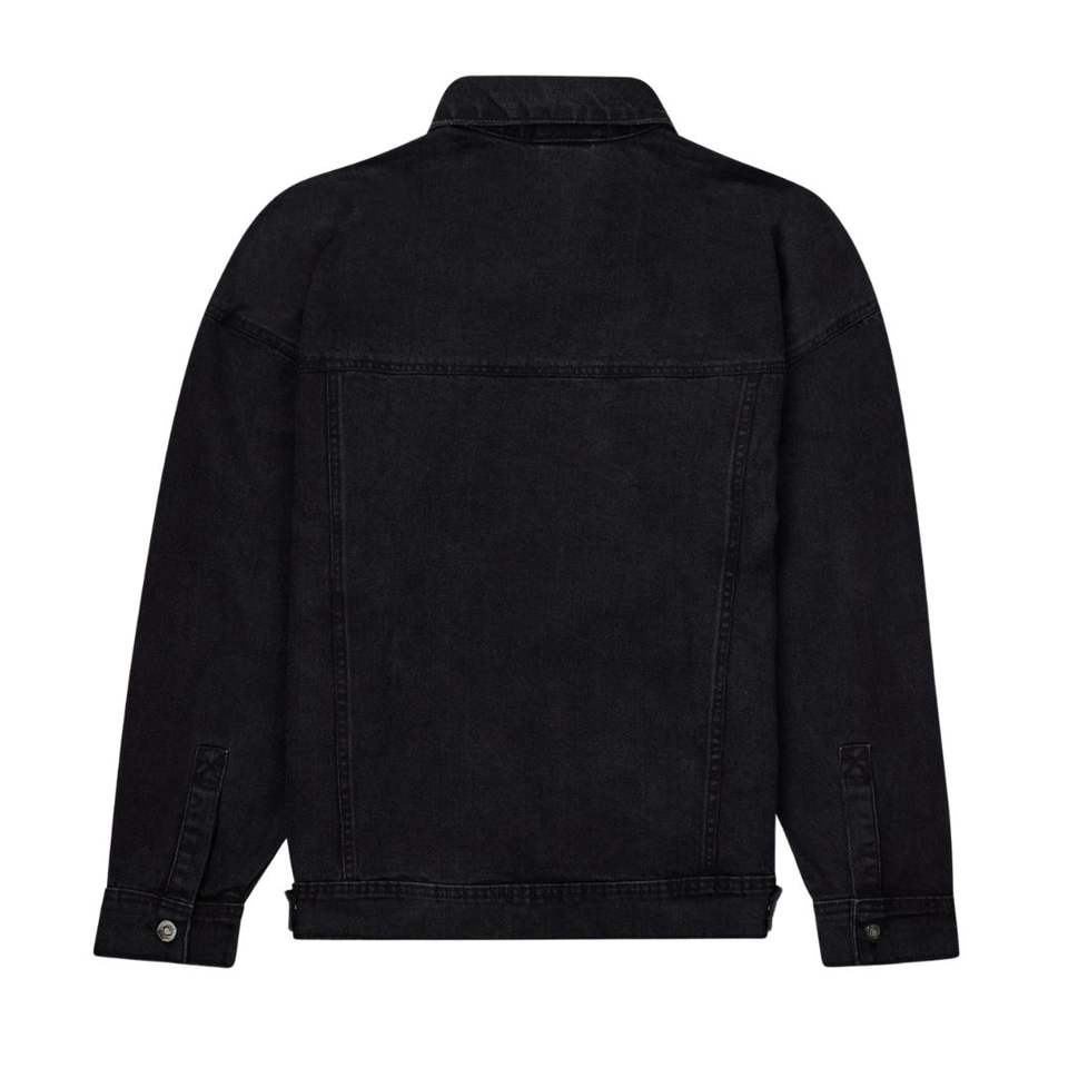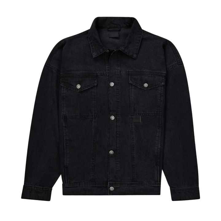 Mens Denim Jacket Black Oversized Fit Outerwear with Classic Button Front Dual Chest Pockets and Rugged Stitch Details