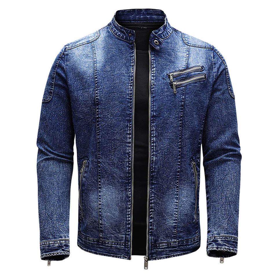 เสื้อแจ็คเก็ตยีนส์ผู้ชาย คอตั้ง อุ่นสบาย สำหรับฤดูใบไม้ผลิ เสื้อคลุมลำลอง แฟชั่นล่าสุด รับผลิตตามแบบ สกรีนโลโก้ โรงงานผลิต