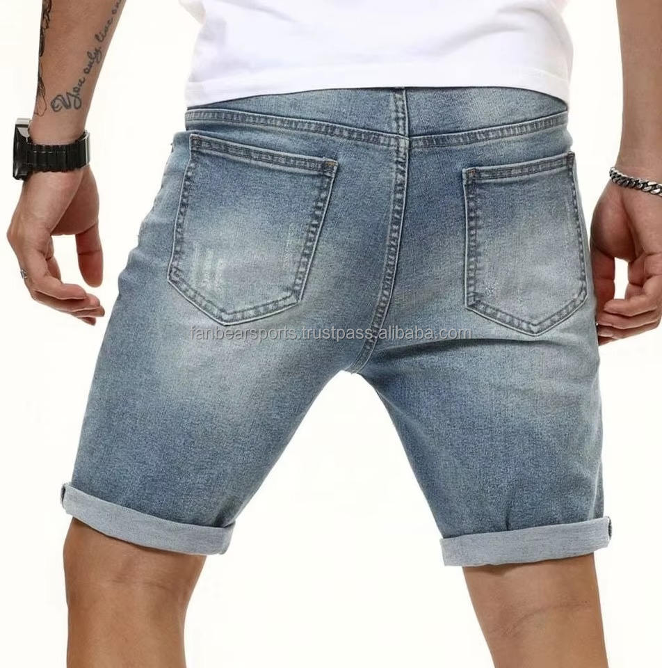 กางเกงยีนส์ขาสั้นผู้ชายแฟชั่นลำลองฤดูร้อนทรงพอดีตัวเอวสบายสีเทาซีดสไตล์ลำลอง