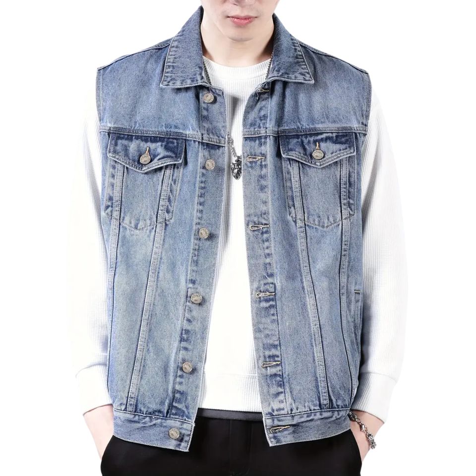 เสื้อกั๊กยีนส์สำหรับผู้ชาย, แจ็กเก็ตผ้าฝ้าย100% น้ำหนักเบาระบายอากาศได้ดีสำหรับกีฬากลางแจ้งเสื้อจับแพะชนแกะสำหรับวัยรุ่นและผู้ใหญ่