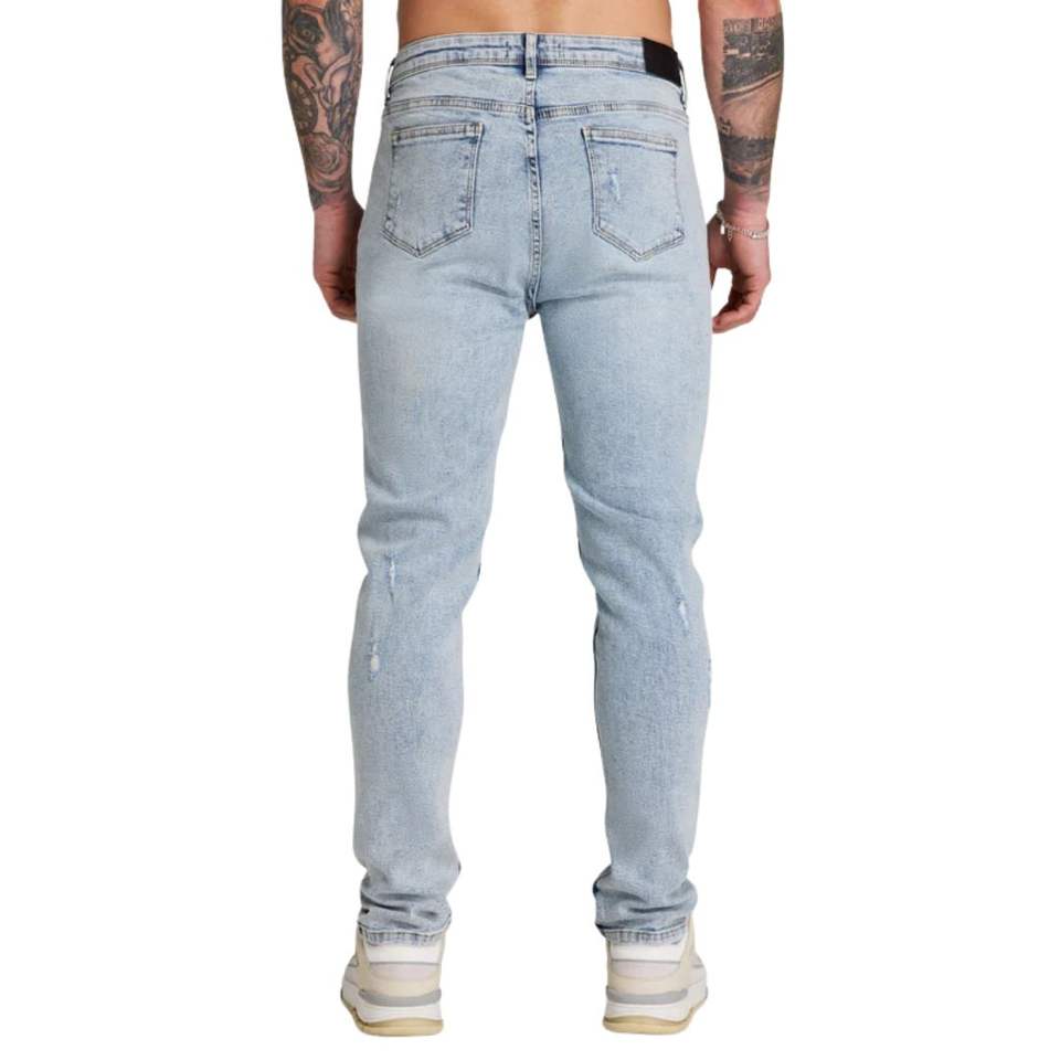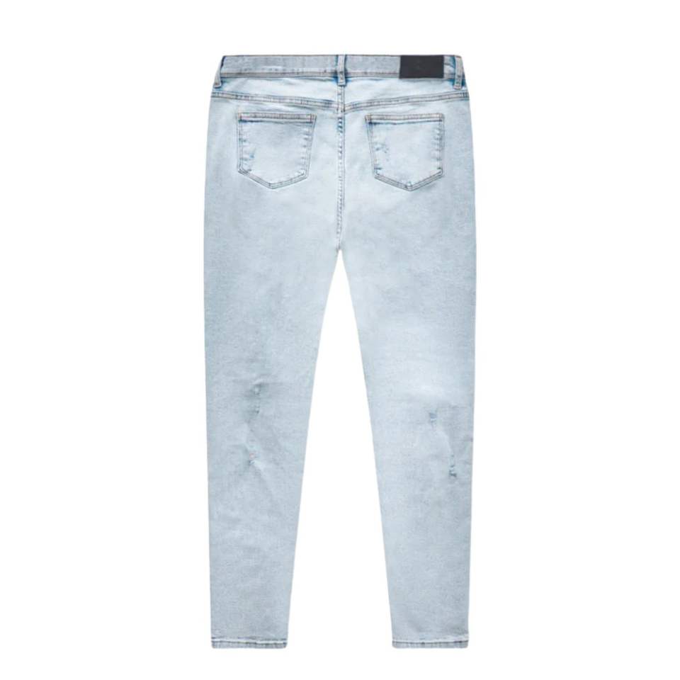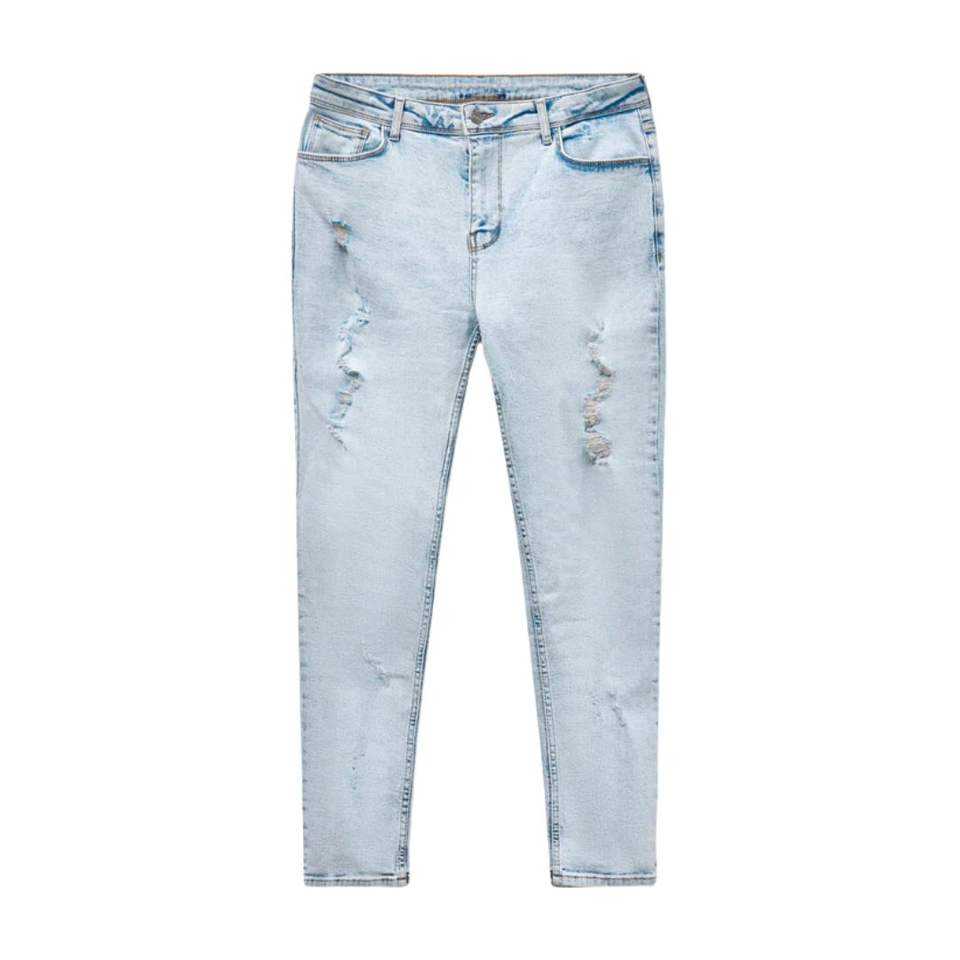 กางเกงยีนส์ผู้ชายทรงสลิมฟิต ผ้าฝ้าย 100% สำหรับฤดูหนาว แบบขาดๆ เซอร์ๆ ยืดหยุ่นได้ น้ำหนักเบา ทรงตรง สไตล์ลำลอง ดูดีแบบเท่ๆ ทอแบบเรียบ ย้อมสีพื้น