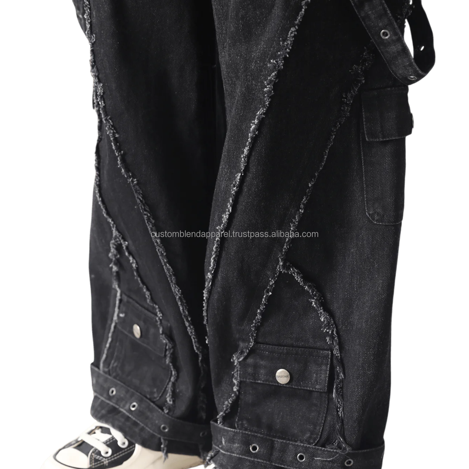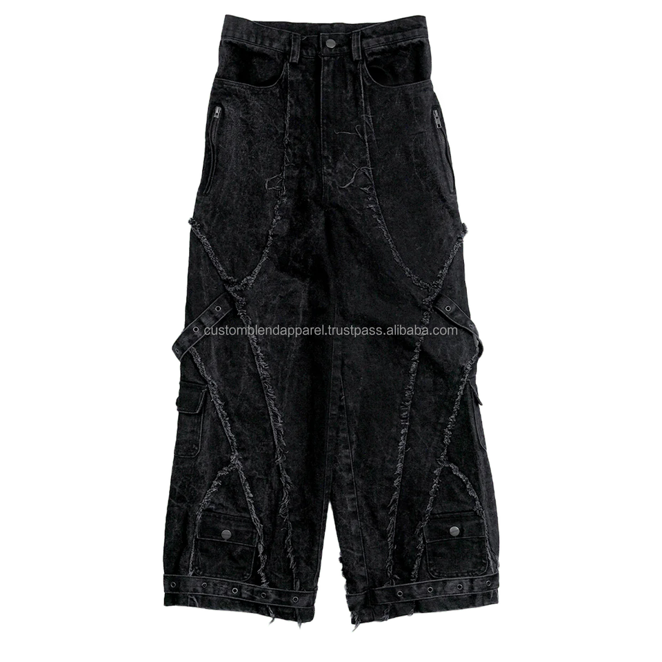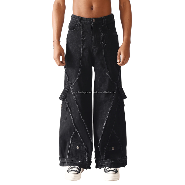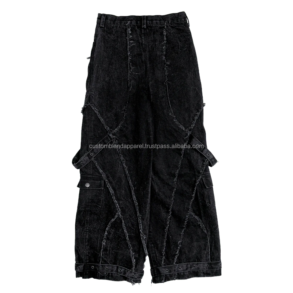 Mens Casual Distressed Wide Leg Baggy Fit Panel Work Cargo Sweatpants 100% Cotton Premium Vintage Apparel Eco-Friendly Straight