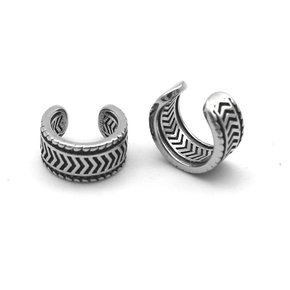 ต่างหูแบบหนีบสำหรับผู้ชาย ยี่ห้อ Yuenique ทำจากสแตนเลส 316L กันน้ำ ป้องกันอาการแพ้ ลายถักแบบไวกิ้งเซลติก แถบกว้าง ไม่ต้องเจาะหู เหมาะสำหรับเป็นของขวัญ