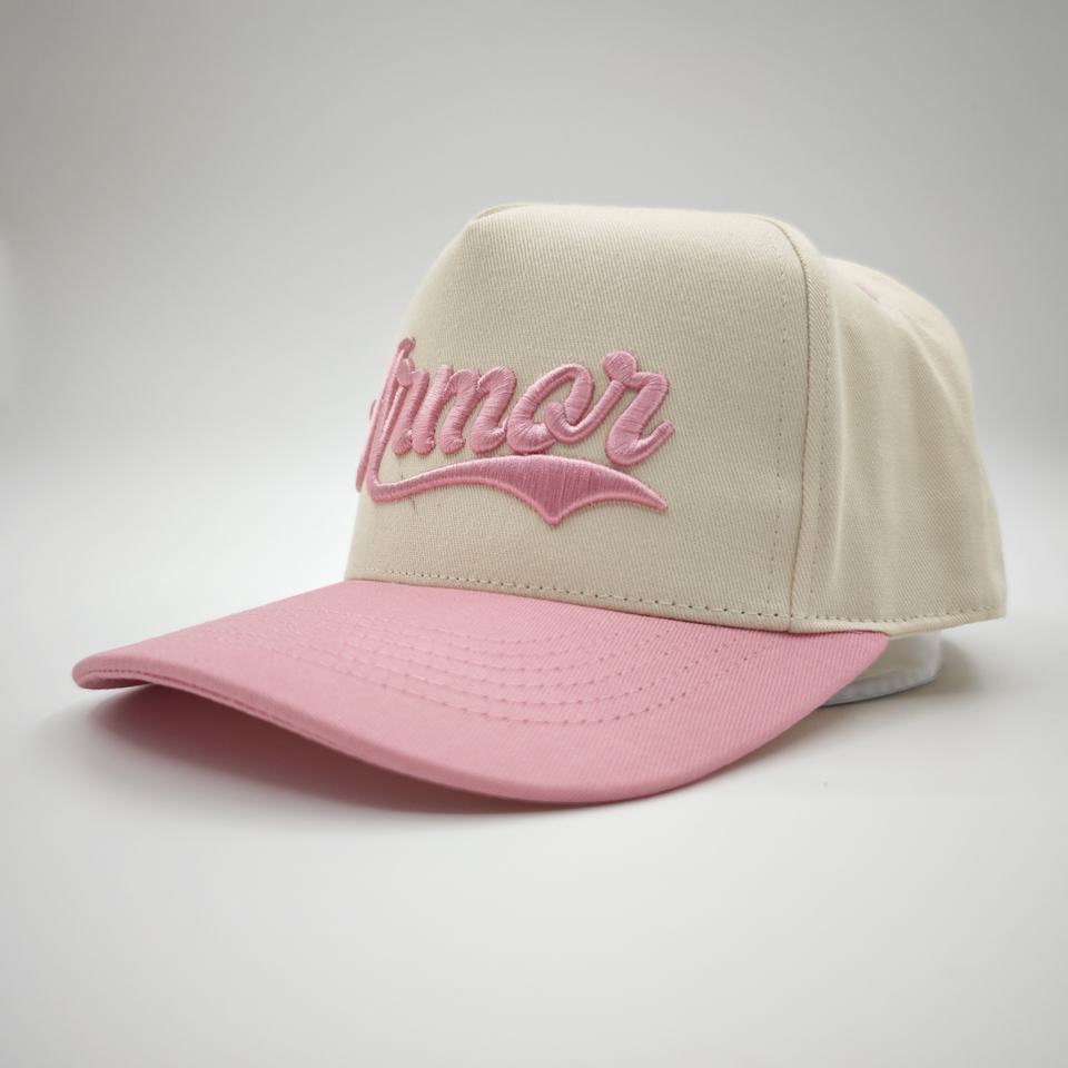 หมวกเบสบอลทรงห้าชิ้นสีทูโทนแบบมีโครงสร้างสำหรับผู้ชาย แฟชั่นระดับไฮเอนด์ สีชมพู