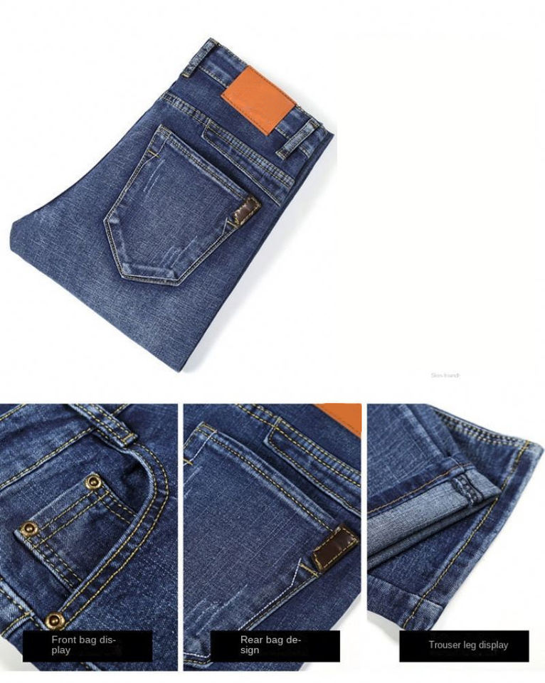 กางเกงยีนส์เดนิมทรงสลิมฟิตสำหรับผู้ชาย สไตล์สตรีทแวร์ ขาดๆ แบบลำลอง สีฟ้าอ่อน สีดำ กางเกงผ้าฝ้ายหลายกระเป๋า