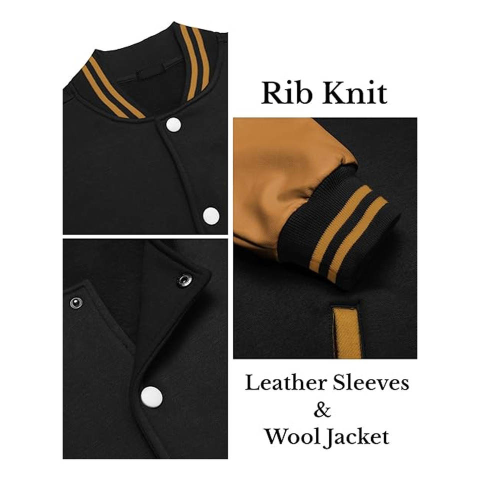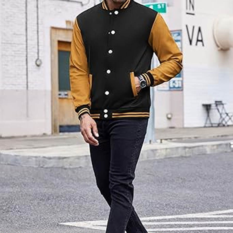 เสื้อแจ็คเก็ตวาร์ซิตี้แฟชั่นผู้ชาย แขนหนัง ทรงเข้ารูป สไตล์วิทยาลัย เบสบอล เลตเตอร์แมน บอมเบอร์โค้ท แนวสตรีทแวร์ ติดกระดุม ลำลอง