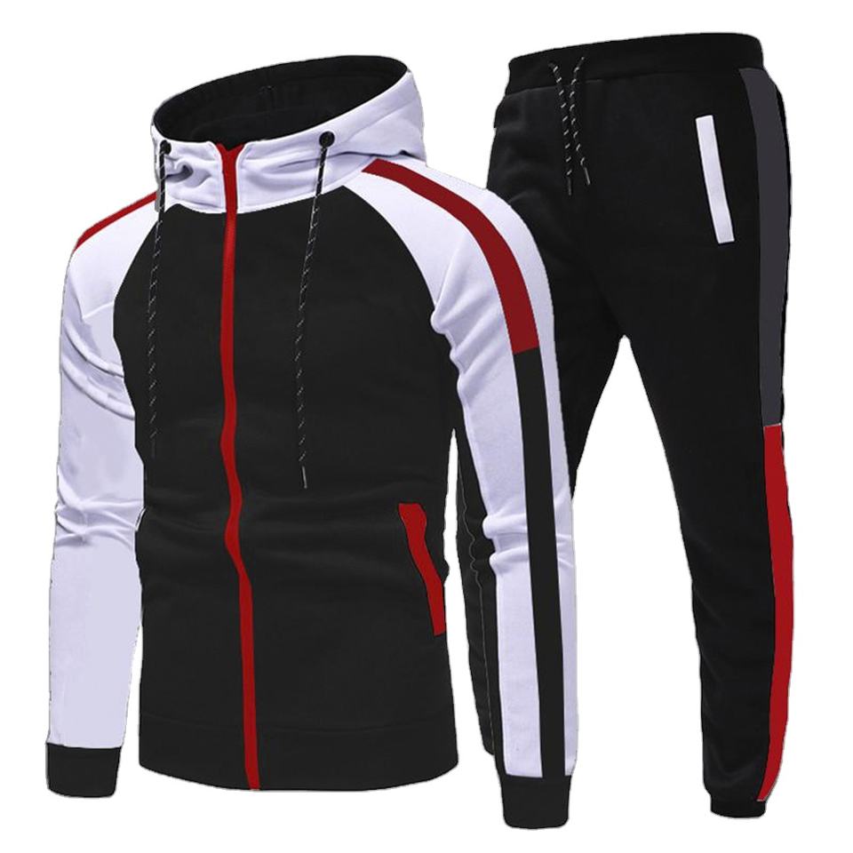 ชุดกีฬาออกกำลังกายแฟชั่นผู้ชายชุดวอร์มมีฮู้ดมีซิปชุดกางเกงกีฬาชุดวอร์มใส่วิ่งจ๊อกกิ้ง