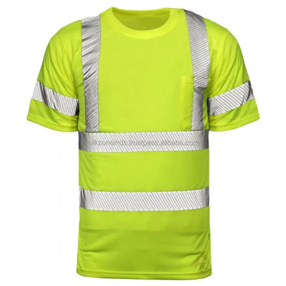 เสื้อทำงานไฮวิสของผู้ชายเสื้อเซฟตี้กันไฟพร้อมเทปสะท้อนแสงทำจากโพลีเอสเตอร์