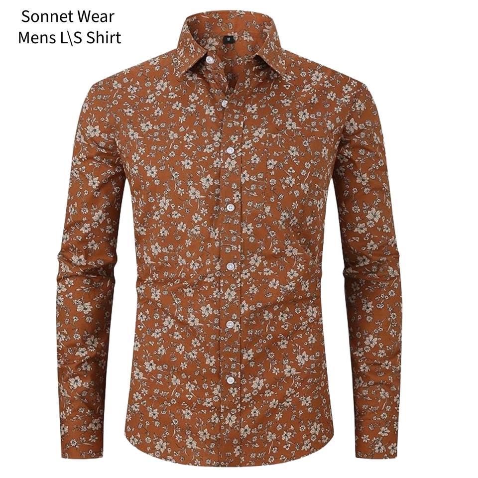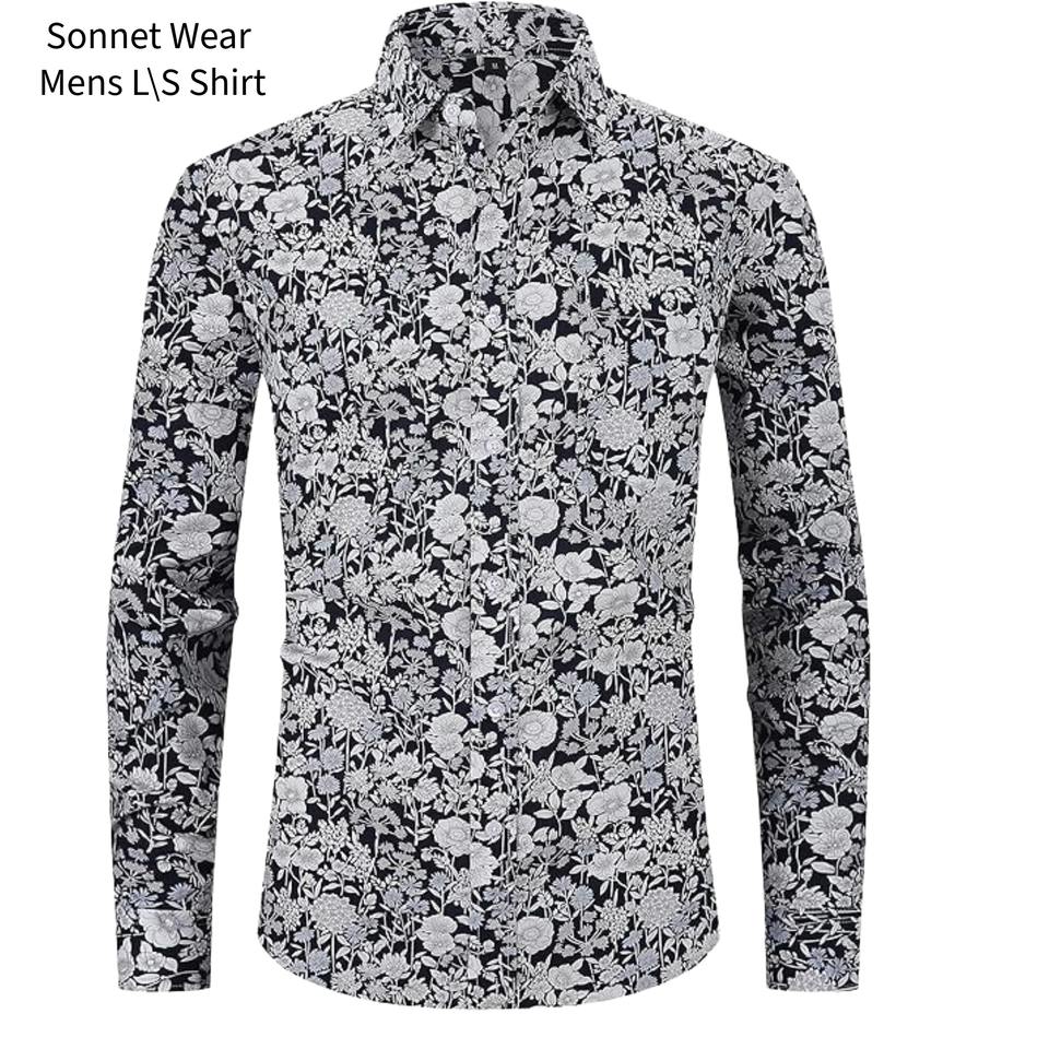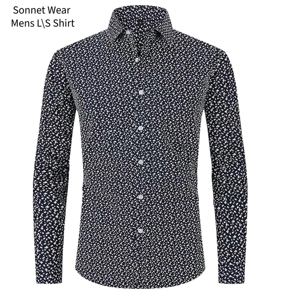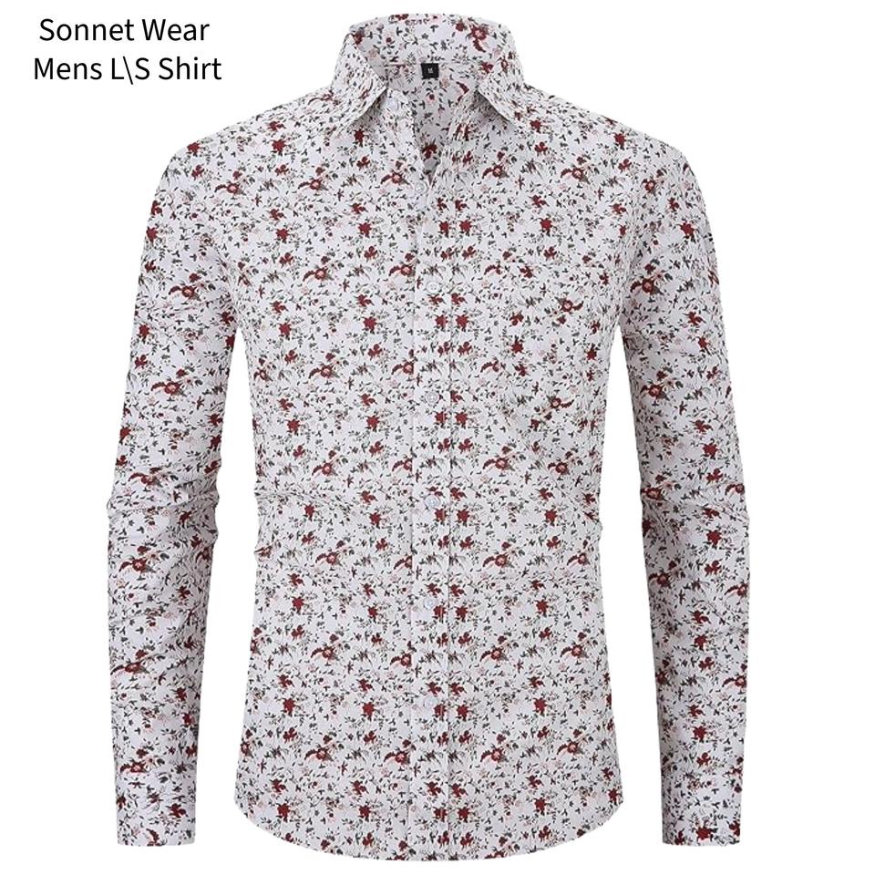 เสื้อเชิ้ตแขนยาวพิมพ์ลายกราฟิกสำหรับผู้ชายทรงเข้ารูป