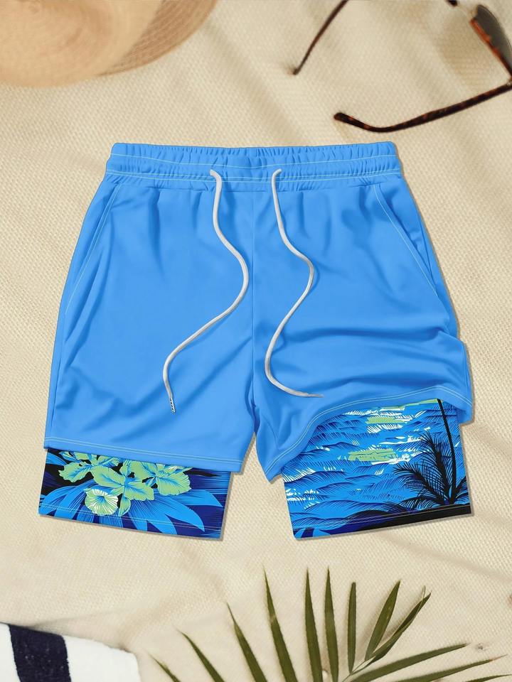 กางเกงว่ายน้ำชายลายดอกไม้ แห้งเร็ว ชุดชายหาด น้ำหนักเบา ระบายอากาศได้ดี ผ้าทอ เอวกลาง มีเชือกผูกยางยืด