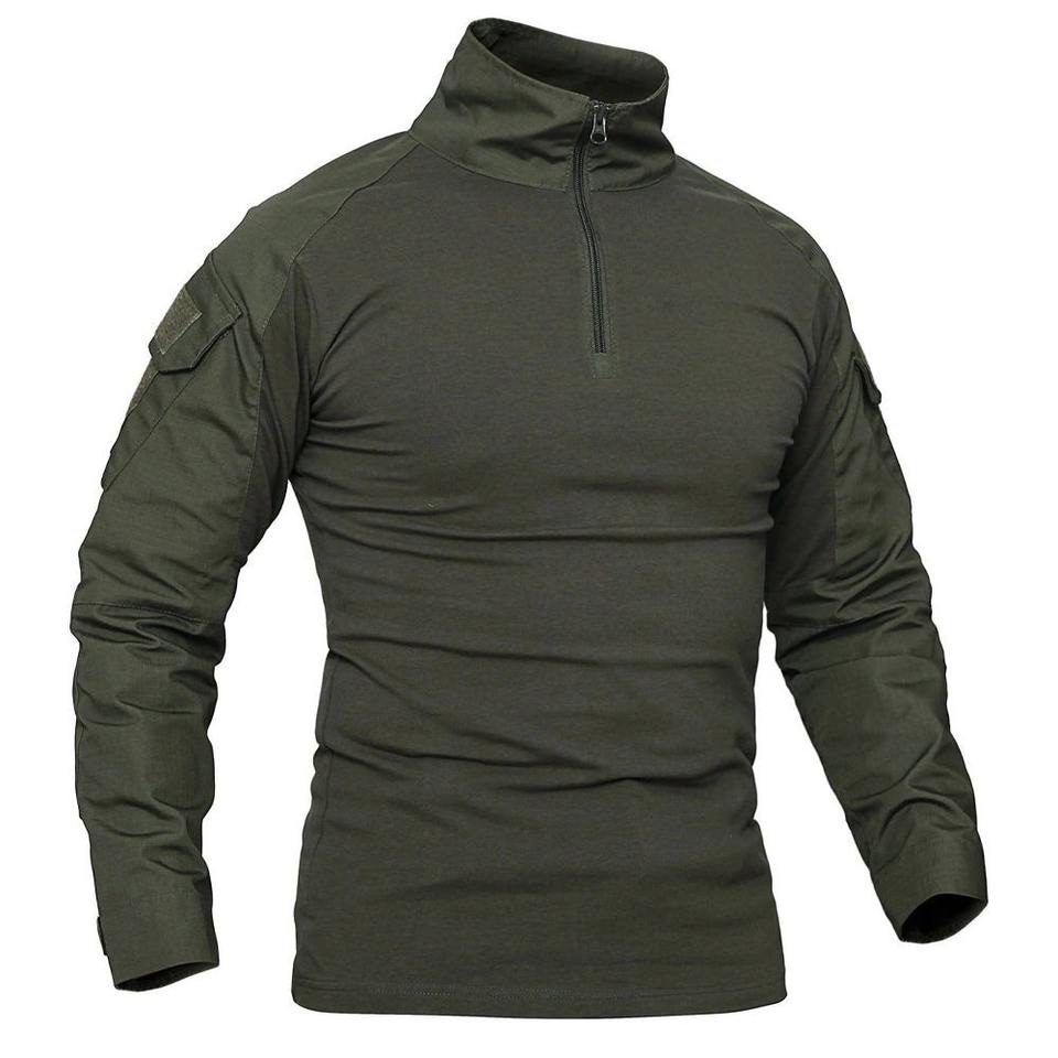 เสื้อเชิ้ตแขนยาวผู้ชายแบบซิป ¼ ลายพราง สำหรับกิจกรรมกลางแจ้ง ล่าสัตว์ และฝึกซ้อม