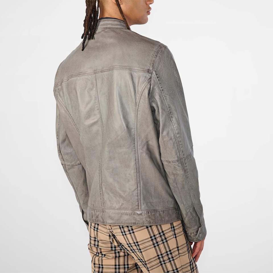 แจ็กเก็ตหนังแท้สำหรับผู้ชายสีเทา-หนังเม็ดเต็มคุณภาพสูงพร้อมลุควินเทจเหมาะสำหรับแฟชั่นในเมือง