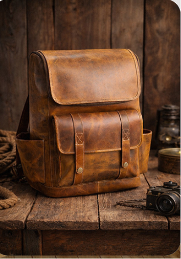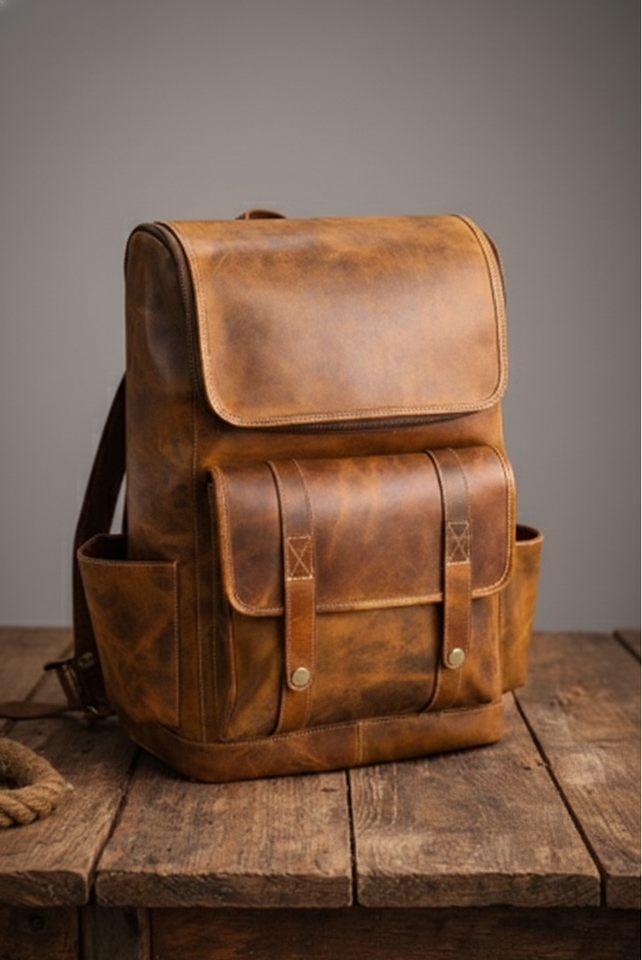 กระเป๋าเป้หนังแท้สำหรับผู้ชาย รุ่นพรีเมียม น้ำหนักเบา ใส่แล็ปท็อปได้ พร้อมสายรัดกันกระแทก สำหรับทำงานและเดินทาง โดย VARAD IMPEX