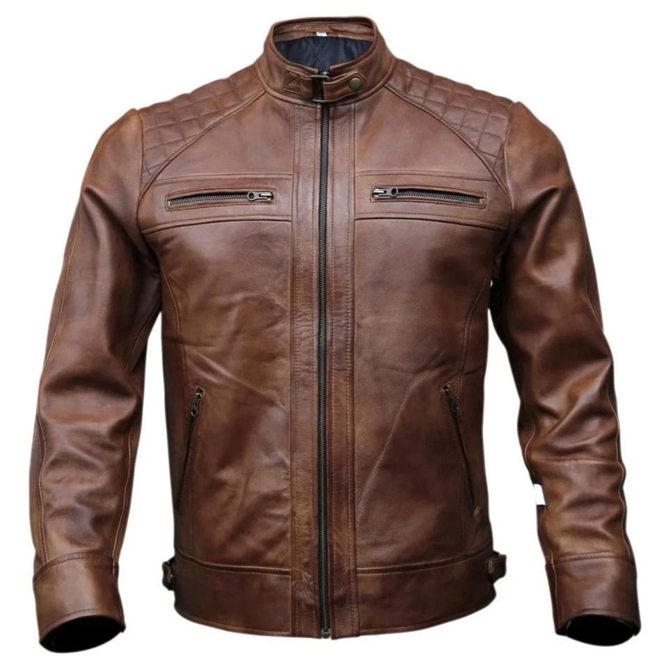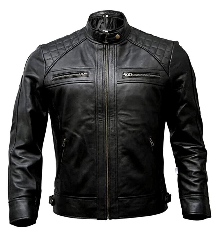 เสื้อแจ็คเก็ตหนังแท้สำหรับผู้ชาย สไตล์ไบค์เกอร์ สำหรับขี่มอเตอร์ไซค์ แข่งรถ กิจกรรมกลางแจ้ง คอตั้ง กันน้ำ ระบายอากาศ กันลม