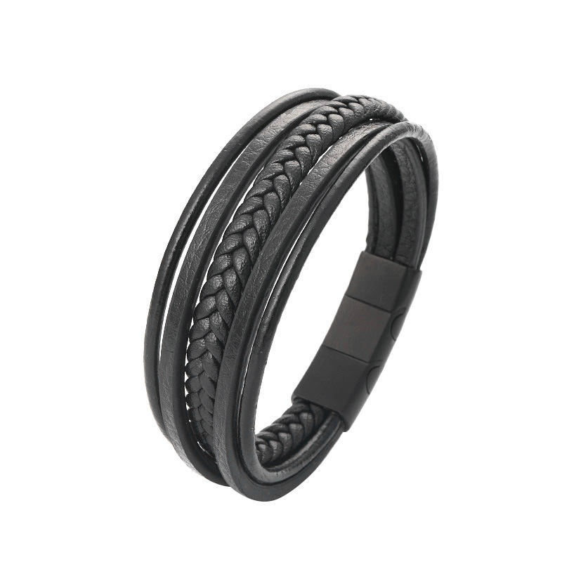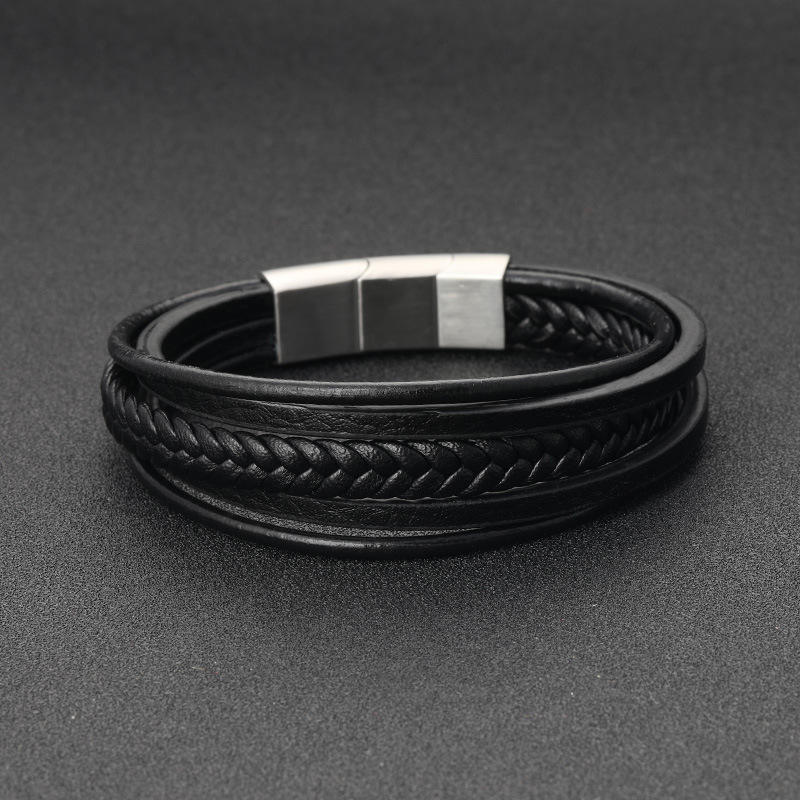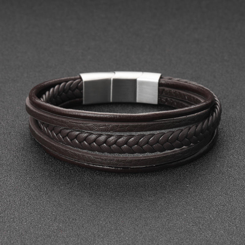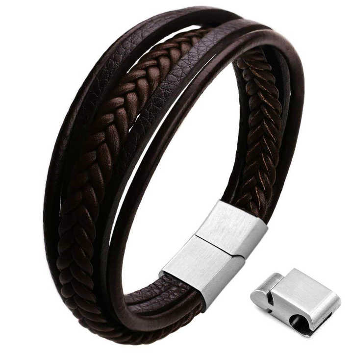 สร้อยข้อมือหนังแท้สำหรับผู้ชายกำไลข้อมือ2020หนังถักด้วยแม่เหล็กทำจากสเตนเลสสตีล