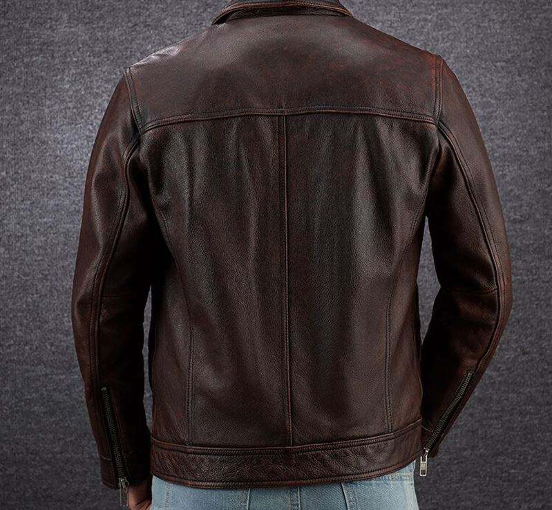 เสื้อแจ็คเก็ตหนังแท้สำหรับผู้ชาย สไตล์ไบค์เกอร์ มอเตอร์ไซค์ ย้อนยุค คลาสสิก คาเฟ่ เรเซอร์ วินเทจ สีน้ำตาล