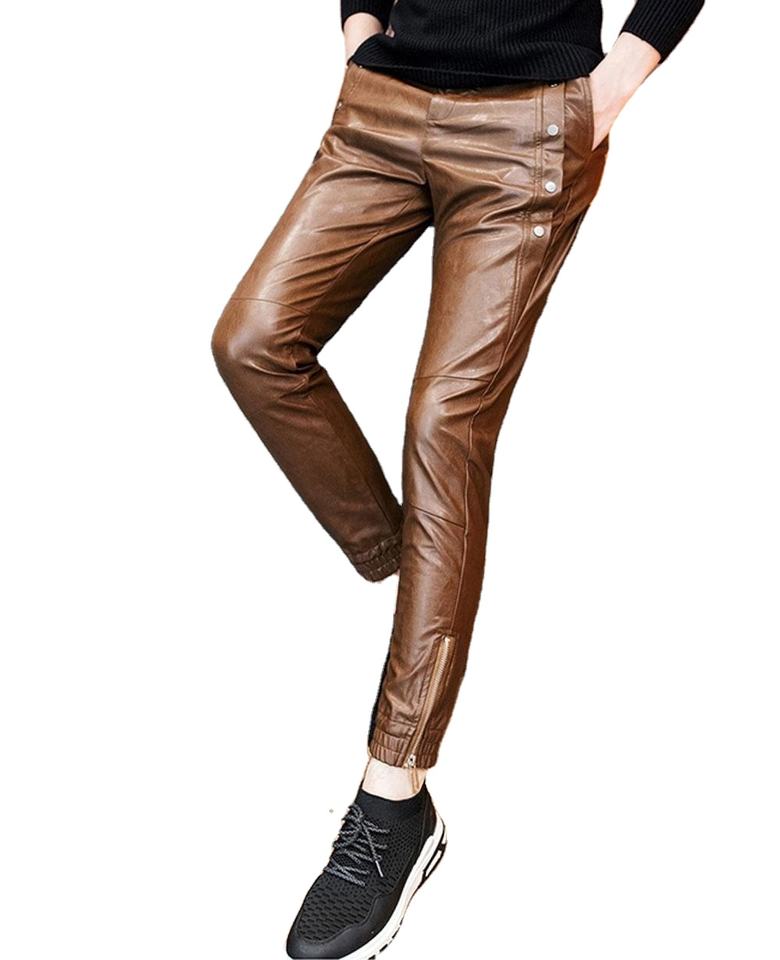 Mens Genuine Sheep Leather Pants Real Leather New Brand Genuine Sheepskin Leather Motorbike Pants