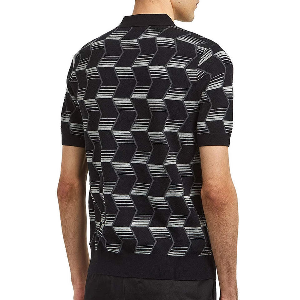 ชุดเสื้อโปโลลายเรขาคณิตสำหรับผู้ชายสีดำสีเทาดีไซน์ฤดูร้อนชุดลำลองสองชิ้น