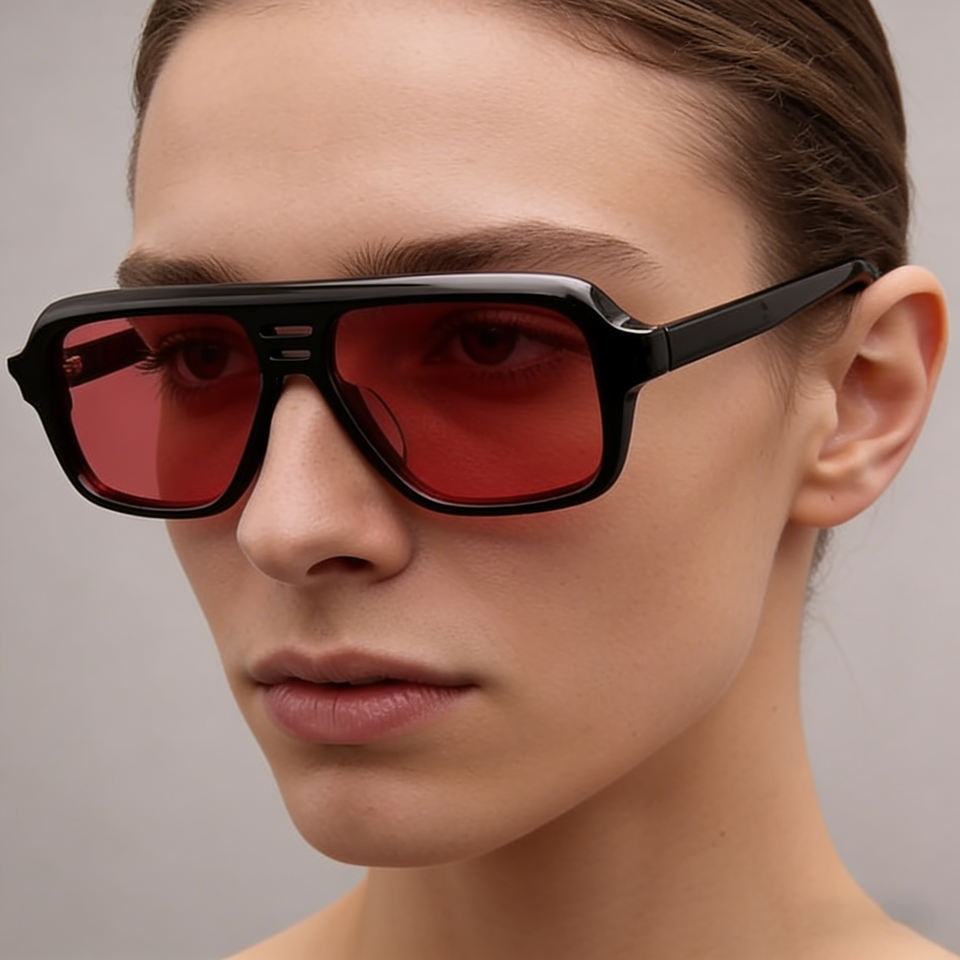 แว่นตาผู้ชายทรง CP กรอบ UV400 แว่นกันแดดสั่งทำพิเศษ รุ่น 2026 สีดำ แว่นทรงเหลี่ยม แว่นกันแดดหรูหรา