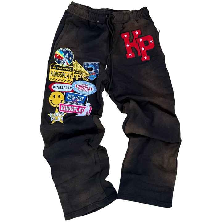 กางเกงวอร์มผู้ชายลายกราฟิก ทรงหลวม ผ้าฟลีซ สไตล์สตรีทแวร์ ดีไซน์โดดเด่น ใส่สบายๆ สำหรับพักผ่อนหรือใส่ทุกวัน