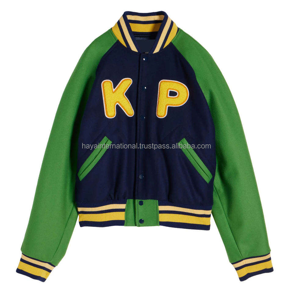 เสื้อแจ็คเก็ตวาร์ซิตี้มีฮู้ดสีเขียวน้ำเงินสำหรับผู้ชาย มีซิป แต่งลายปักตัวอักษร สไตล์เบสบอล เสื้อคลุมแฟชั่นแนวสตรีทสไตล์วิทยาลัยสุดเทรนดี้
