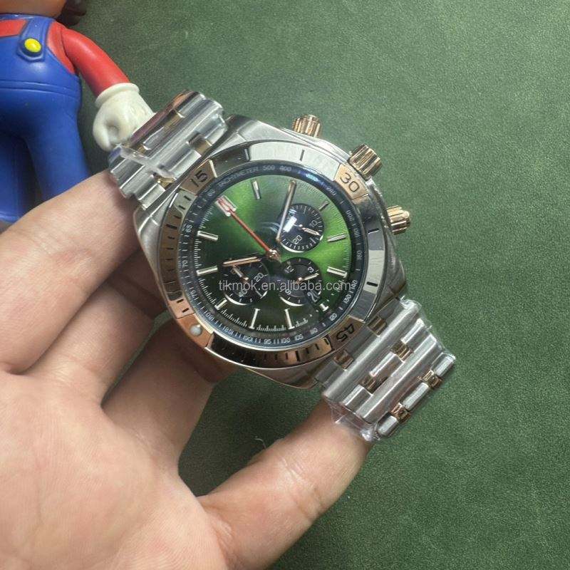 นาฬิกาข้อมือผู้ชายสีเขียวสุดหรู ระบบโครโนกราฟ ควอตซ์ ตัวเรือนเซรามิก ขอบเซรามิก สายสแตนเลสสตีล 316L เครื่องญี่ปุ่น VK สำหรับผู้ชาย