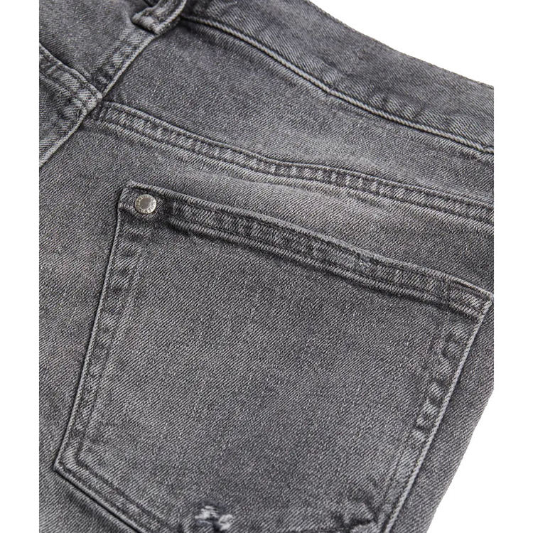 กางเกงยีนส์ขาสั้นสีเทาฟอกกรดสำหรับผู้ชาย ดีไซน์ขอบยางยืด สวมใส่สบาย เหมาะสำหรับฤดูร้อน ขนาดสั่งทำได้ ยืดหยุ่นได้ สไตล์สตรีทแวร์
