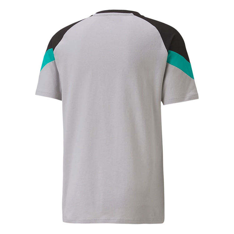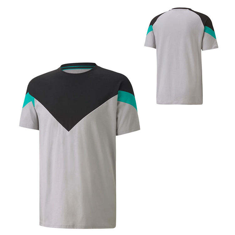 เสื้อยืดผู้ชายสีเทา-ดำ ตัดต่อผ้า 100% ผ้าฝ้ายผสม แห้งเร็ว คอกลม สไตล์ลำลอง