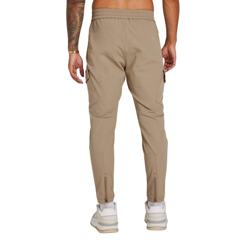 กางเกงคาร์โก้ผู้ชายสีเทาสีเขียวบริสุทธิ์กางเกงสลิมฟิตพร้อมสายรัดเอวยืดรู้สึกมีประสิทธิภาพและการตั้งค่ากระเป๋าที่ทันสมัย