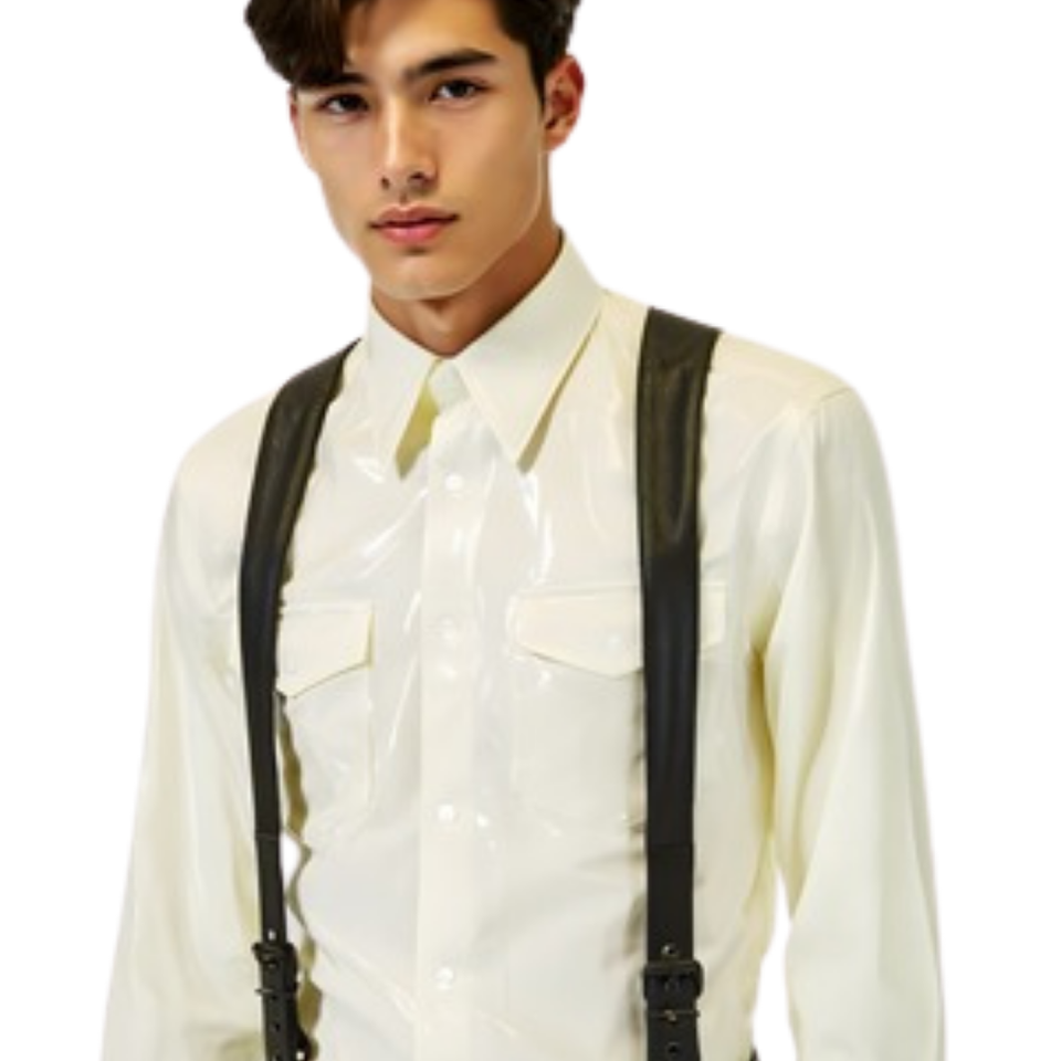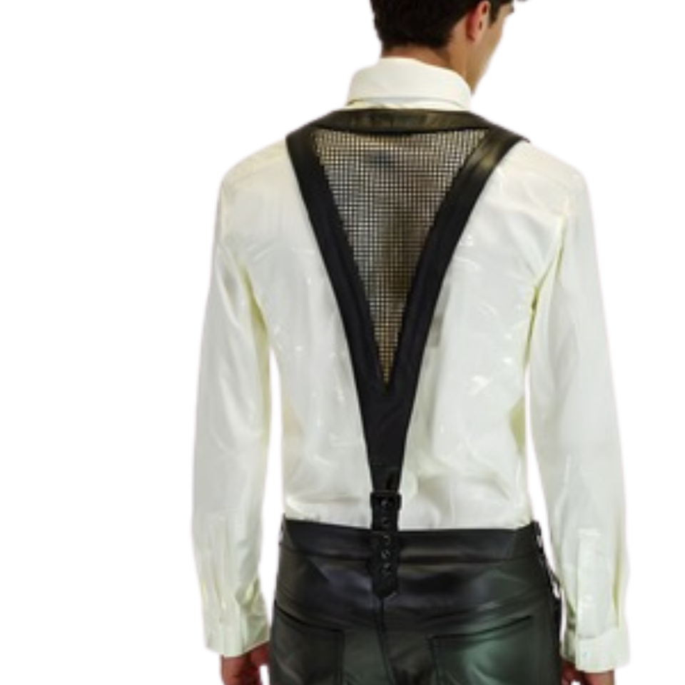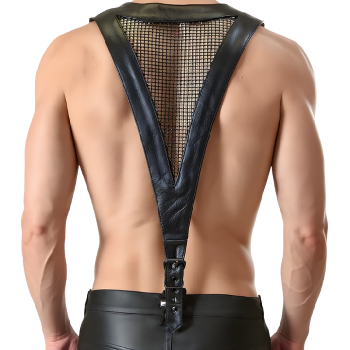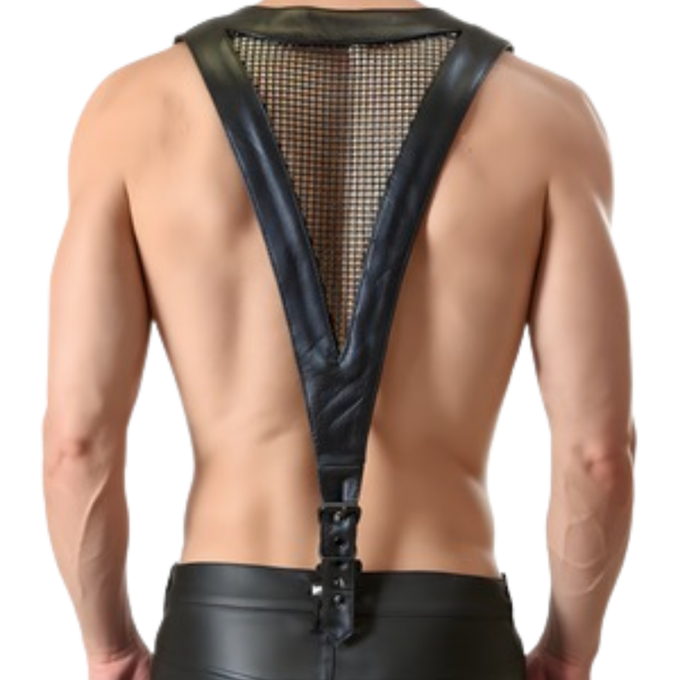 ชุดรัดตัวหนังและตาข่ายแบบมีปกสำหรับผู้ชาย สีแดงและดำ สไตล์เฟติช สำหรับใส่ไปคลับ