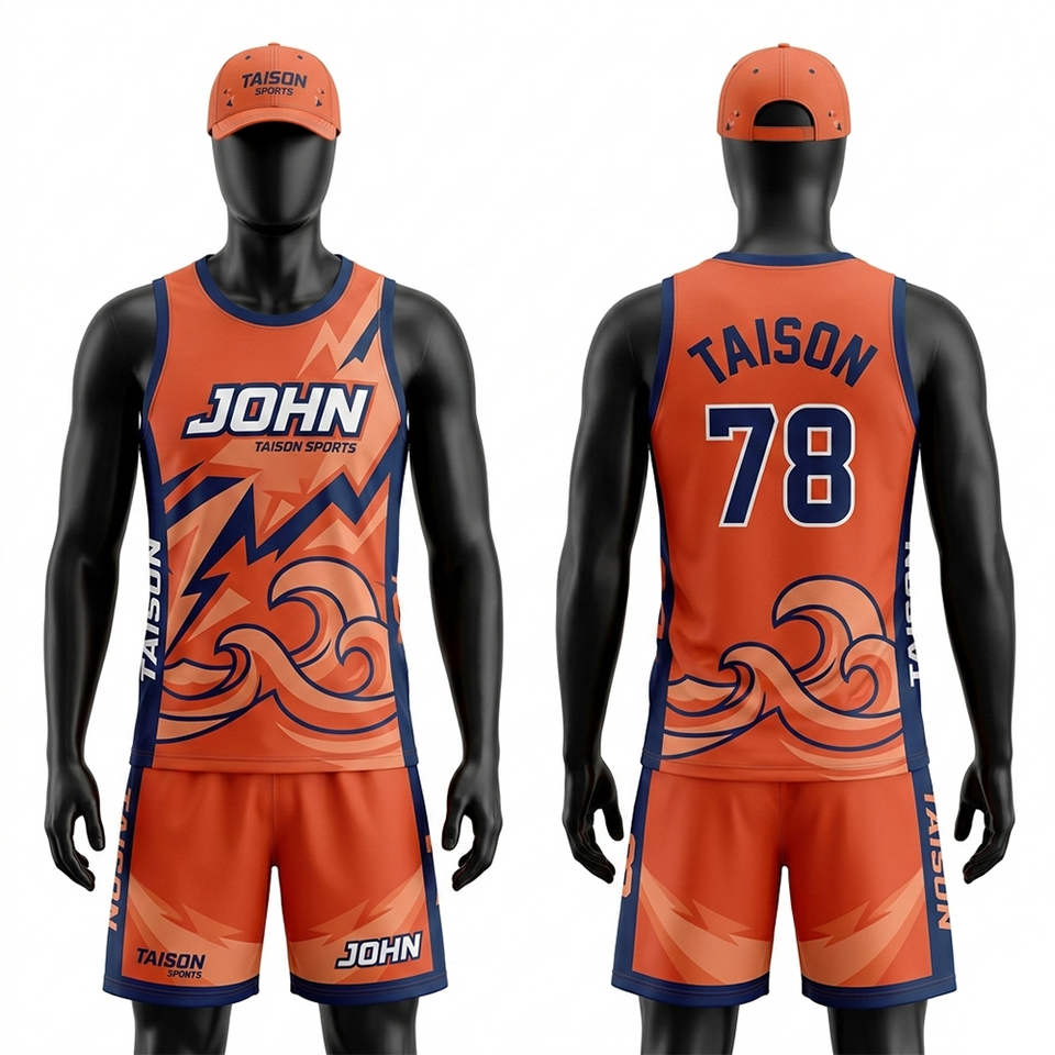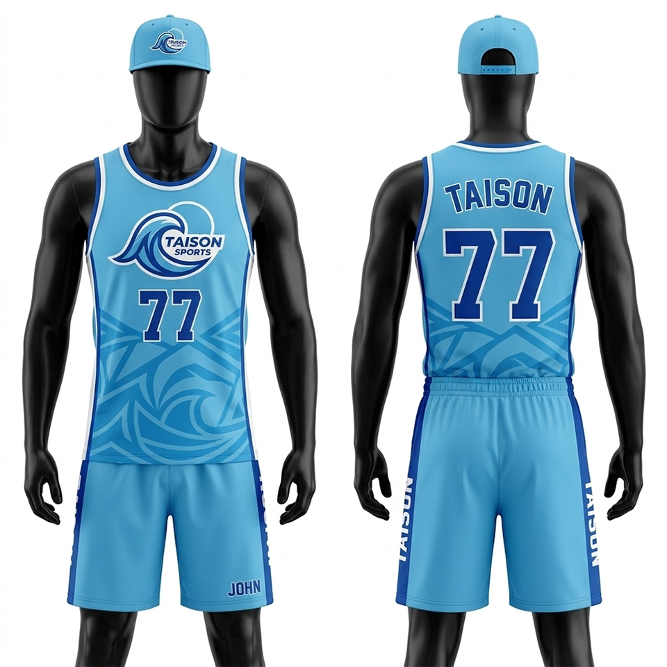 ชุดแฮนด์บอลชาย ผ้าโพลีเอสเตอร์ตาข่ายระบายอากาศ 160 GSM สีฟ้าอ่อนไล่เฉดสีน้ำเงินเข้ม แผงข้างแบบไล่สี รับสกรีนโลโก้ตามแบบ