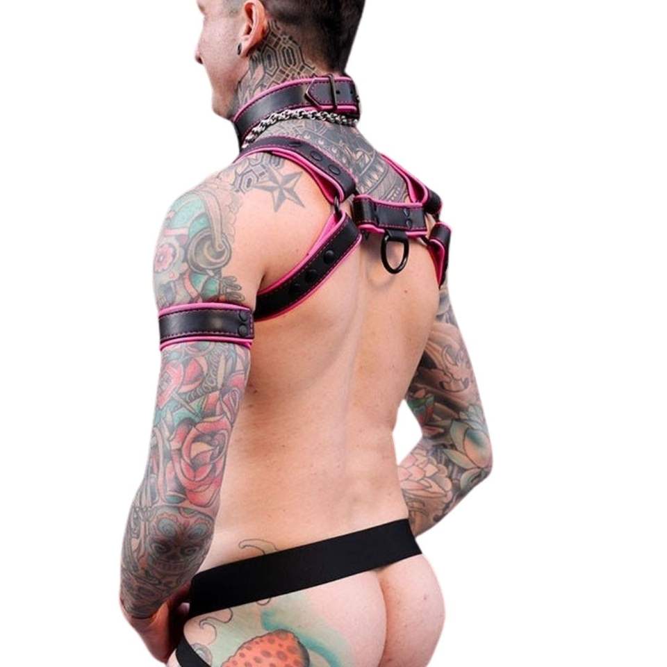 ชุดคอสตูมเซ็กซี่สำหรับผู้ชาย แบรนด์ Hardline Bulldog ทำจากขนสัตว์เทียมสีชมพู แต่งลูกไม้ ปรับขนาดได้ กระชับหน้าอก เหมาะสำหรับใส่ไปคลับ คุณภาพพรีเมียม
