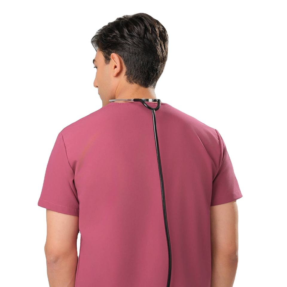 เสื้อสครับสำหรับบุรุษ น้ำหนักเบา ชุดยูนิฟอร์มทางการแพทย์ แขนสั้น สำหรับคลินิกมืออาชีพ รับผลิตแบบ OEM และรับผลิตภายใต้แบรนด์ของลูกค้า