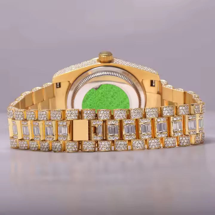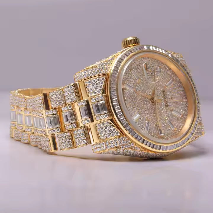 นาฬิกาข้อมือควอตซ์หรูหราสำหรับผู้ชาย ประดับเพชรโมอิสซาไนต์ ตัวเรือนสแตนเลสสตีล แข็งแรงทนทาน เหมาะสำหรับงานพรีเมียมและงานปาร์ตี้