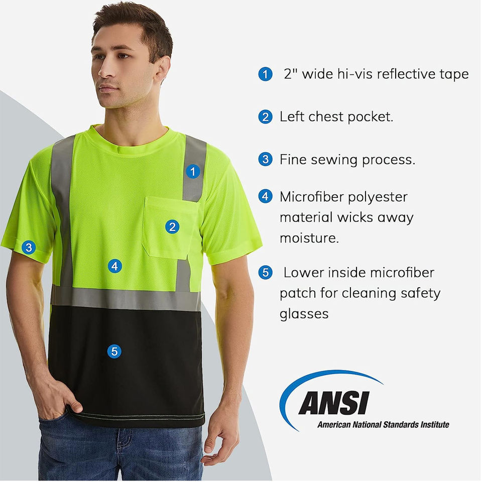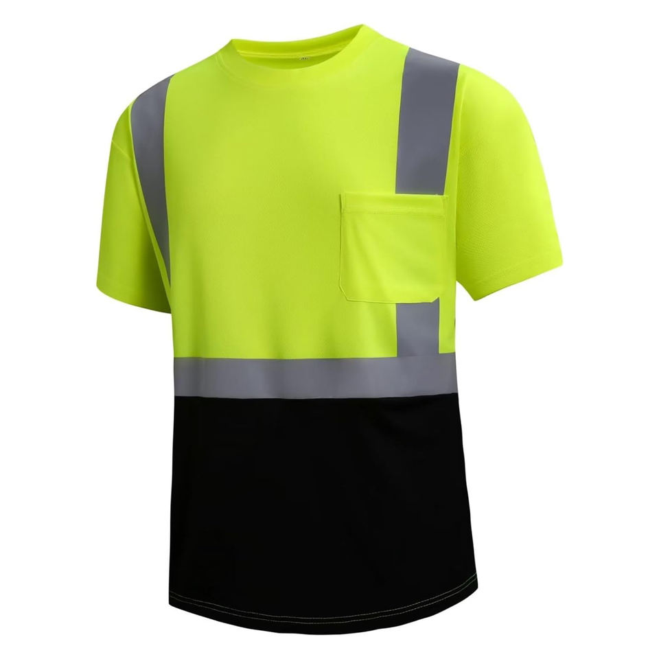 เสื้อยืดคอกลมแขนสั้นสะท้อนแสงสำหรับผู้ชาย แถบสะท้อนแสง แขนสั้น ผ้าโพลีเอสเตอร์ และสายรัดไหล่