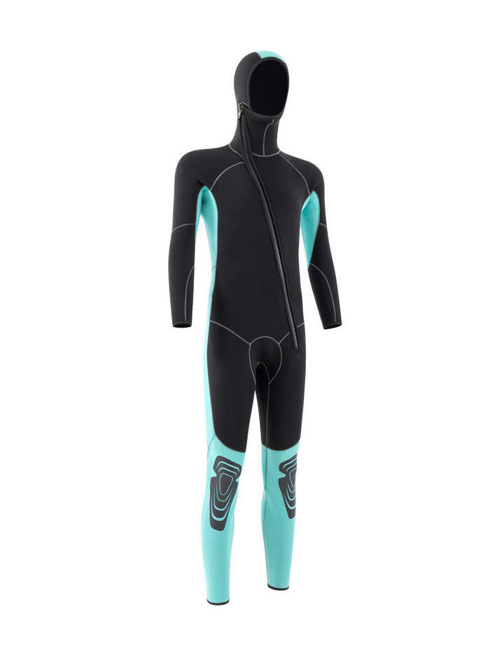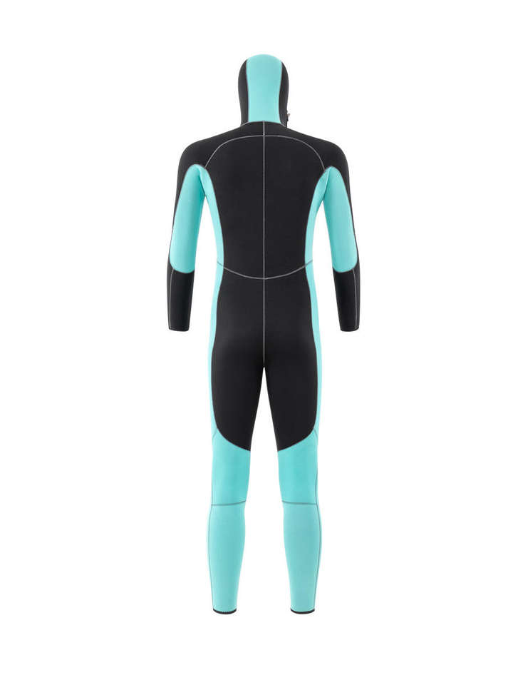 Mens Hooded Neoprene Wetsuit Double Sided Nylon Full Body Suit With Diagonal Front Zipper